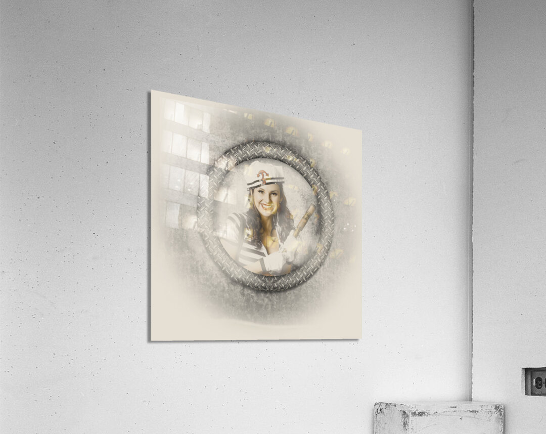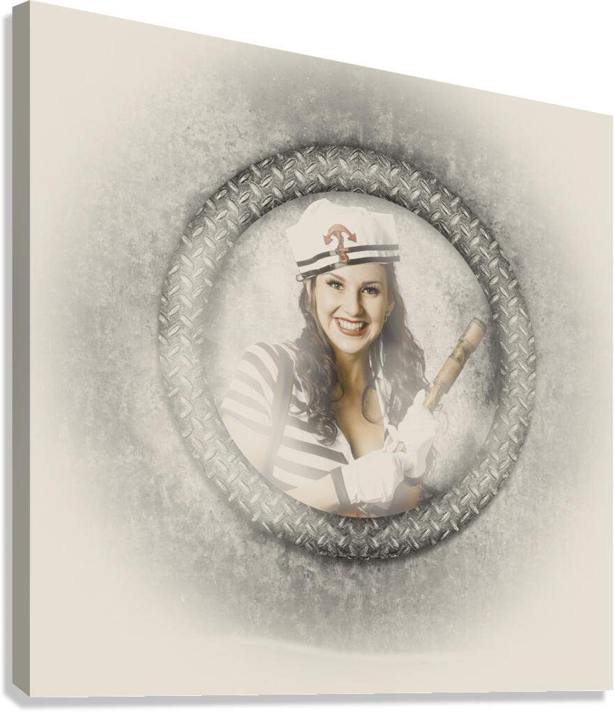 Get this artwork "Boating pin-up woman on nautical shipping voyage" in a framed print.
