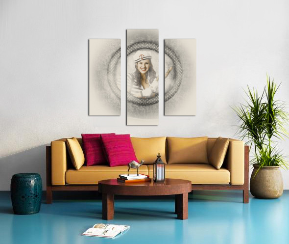 Boating pin-up woman on nautical shipping voyage Frame print