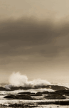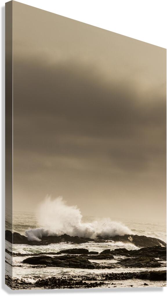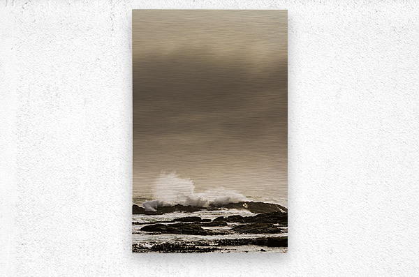 Minimal landscape photo on a marine beach of pounding waves and rocky foreshores. Granville Harbour Western Tasmania Australia