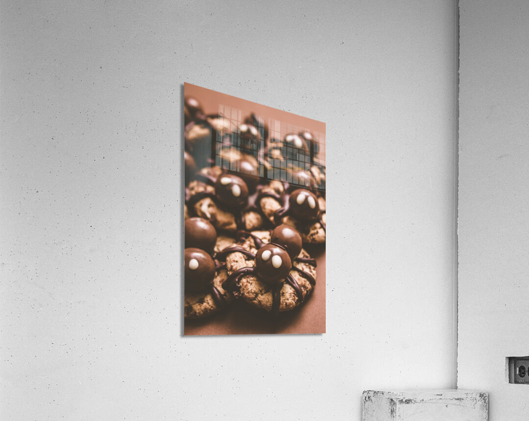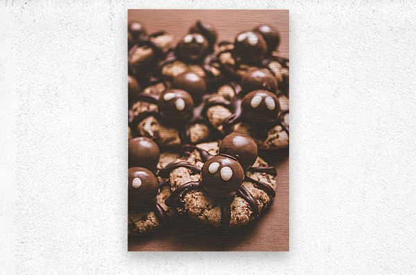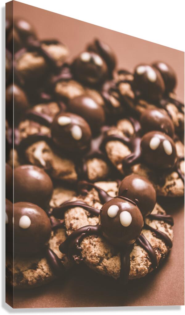 Halloween homemade cookie spiders made melted chocolate and malt balls. spider bites