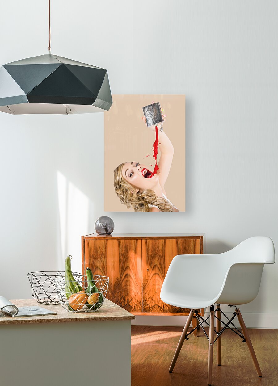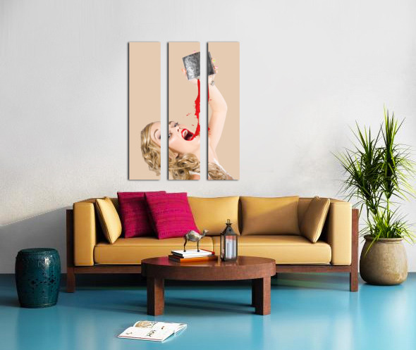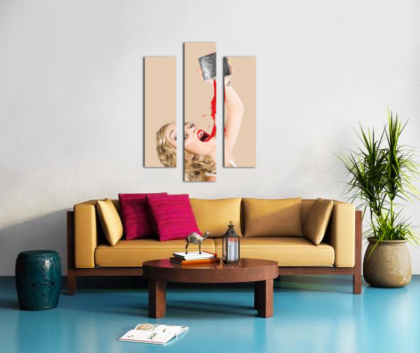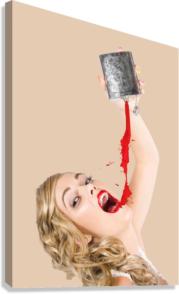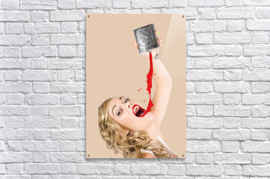 ABOUT THIS ARTWORK: BEAUTIFUL BLONDE MAKE-UP ARTIST WOMAN POURING LIQUID LIPSTICK