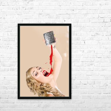 Beautiful Blonde Make-up Artist Woman Pouring Liquid Lipstick Picture Frame Printing
