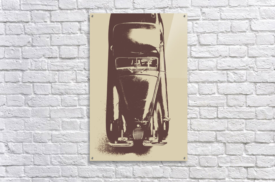 Vintage automotive print on a classic Jaguar XK120 in faded flashback fanfare. Better with age