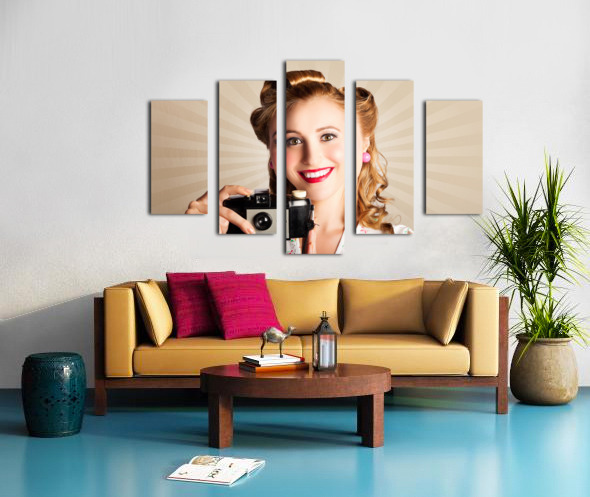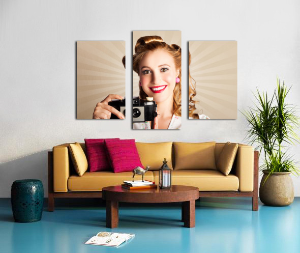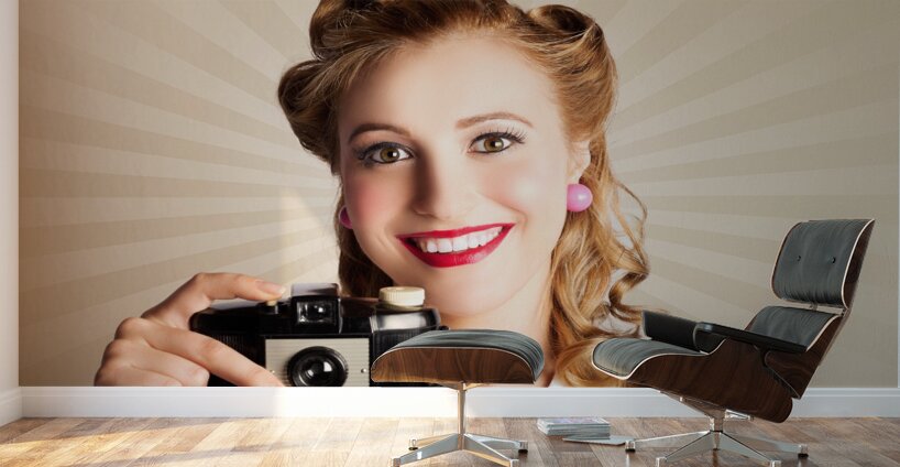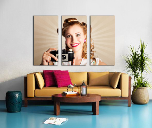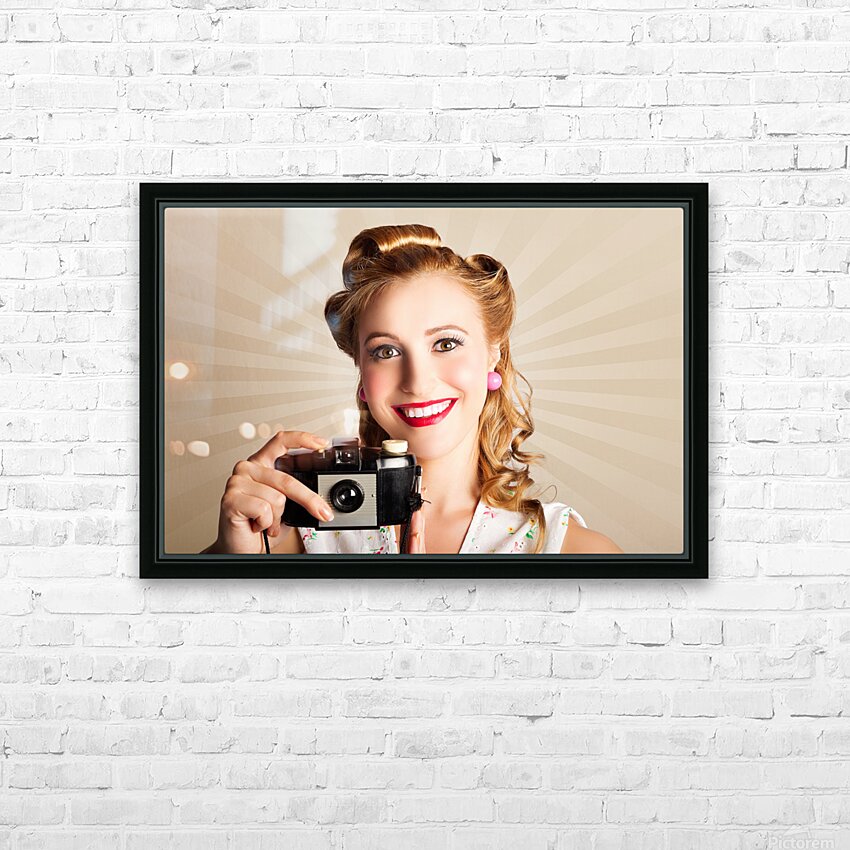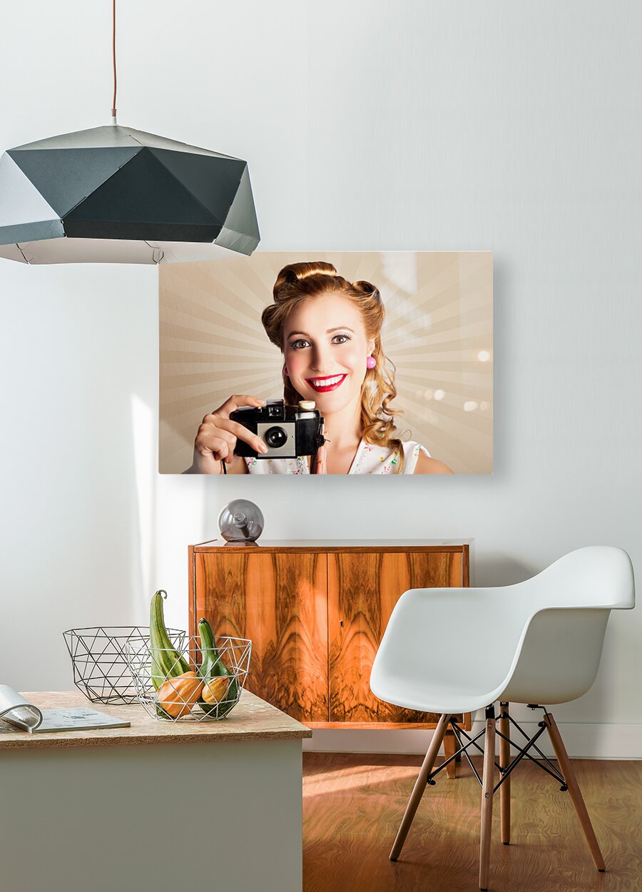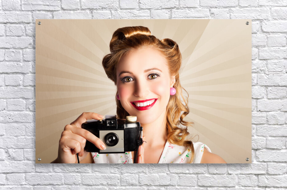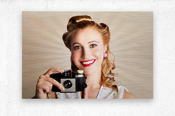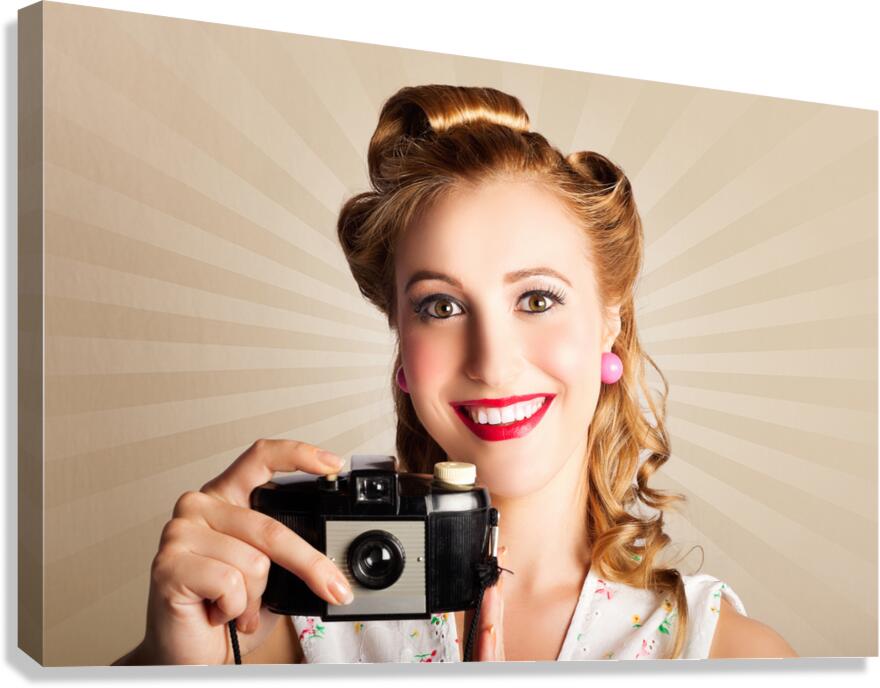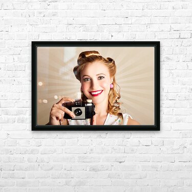 Young Smiling Vintage Girl Taking Photo Picture Frame Printing
