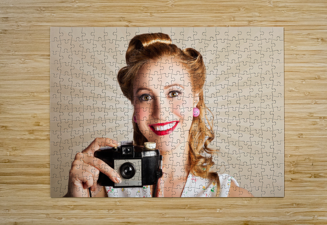 Young Smiling Vintage Girl Taking Photo Jorgo Puzzle printing