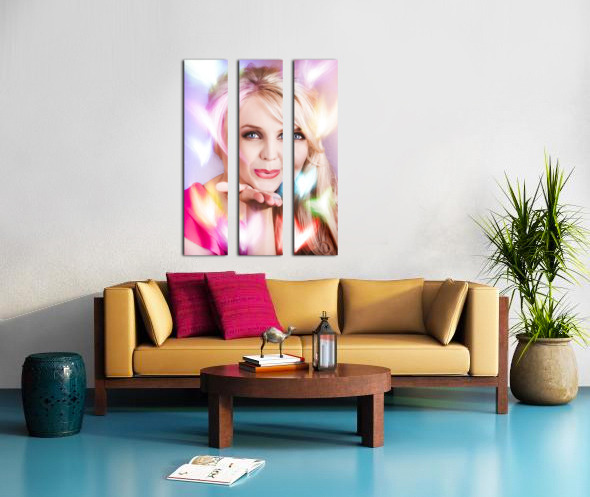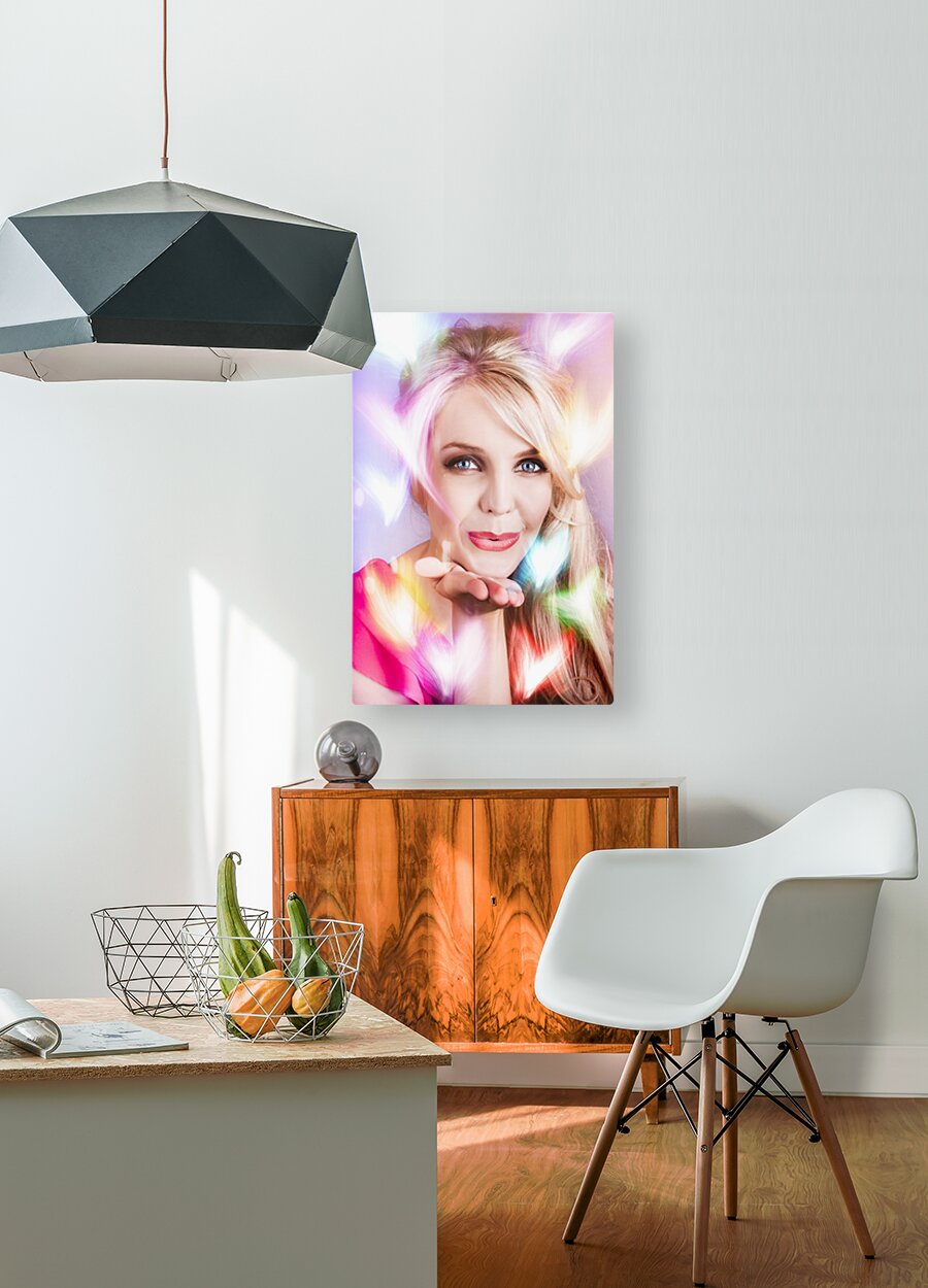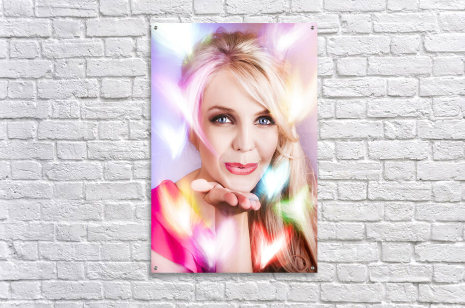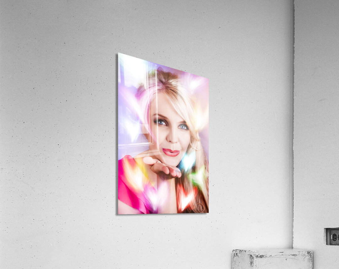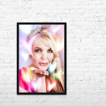 Romantic Girl Blowing Heart Kiss To Her Valentine Picture Frame Printing