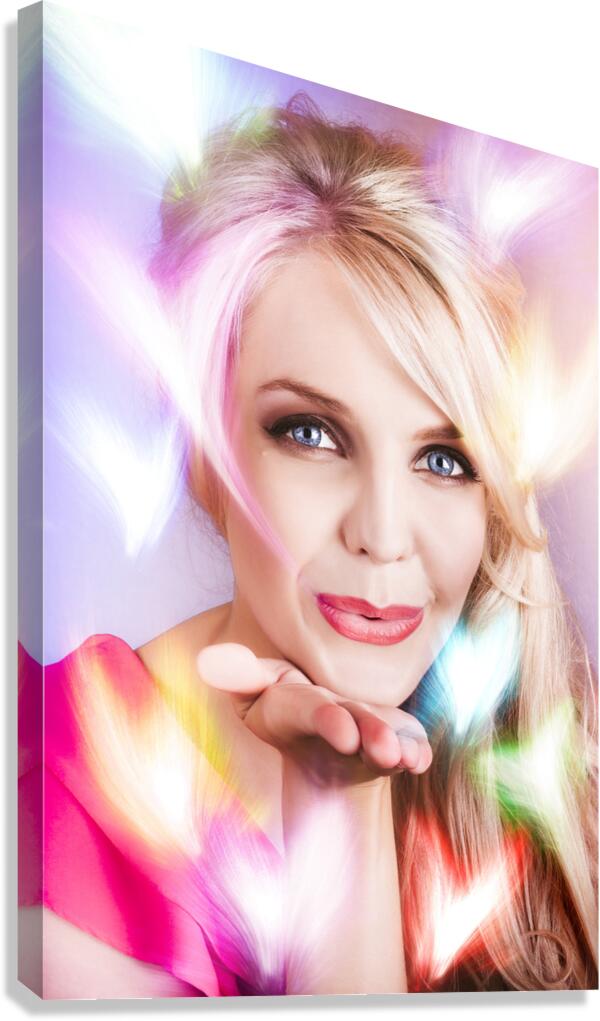ABOUT THIS ARTWORK: ROMANTIC GIRL BLOWING HEART KISS TO HER VALENTINE