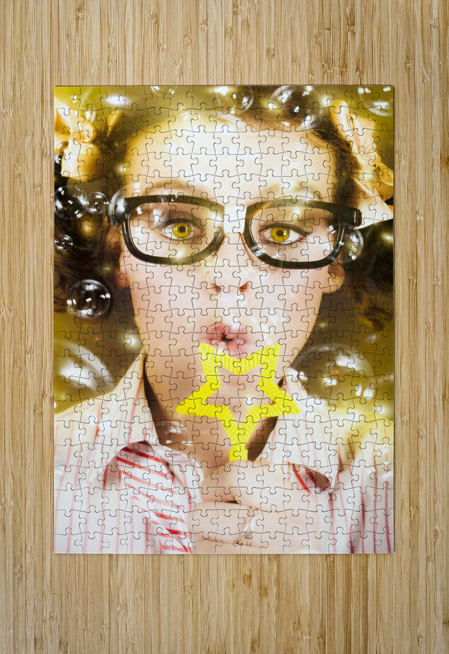 Pretty Geek Girl At Birthday Party Celebration Jorgo Puzzle printing