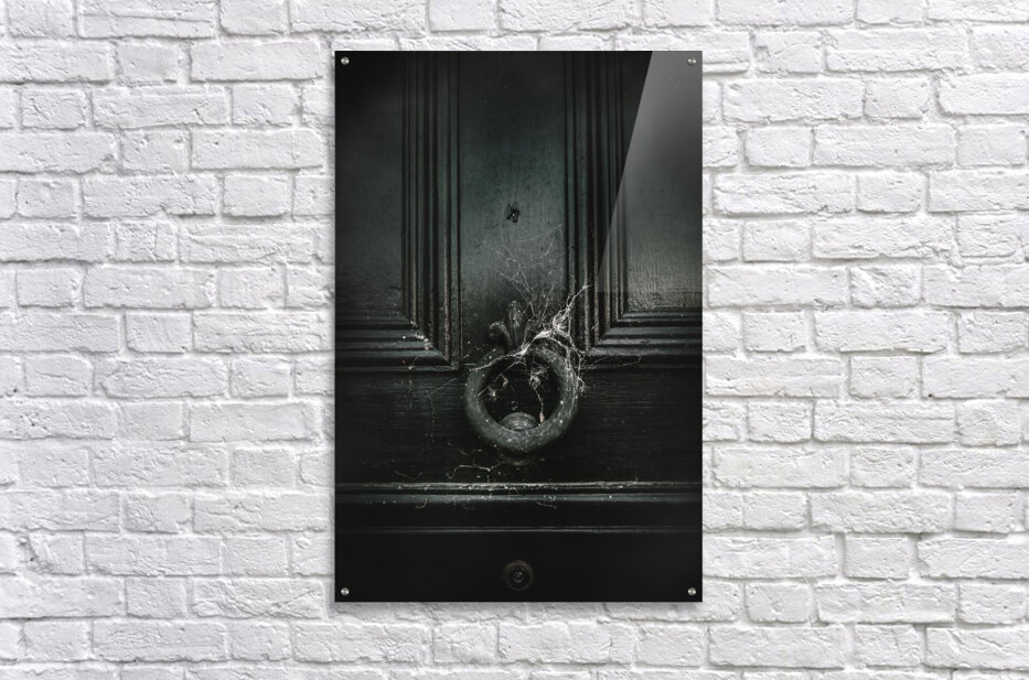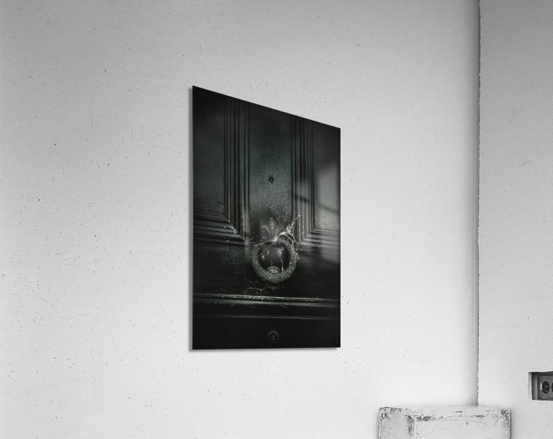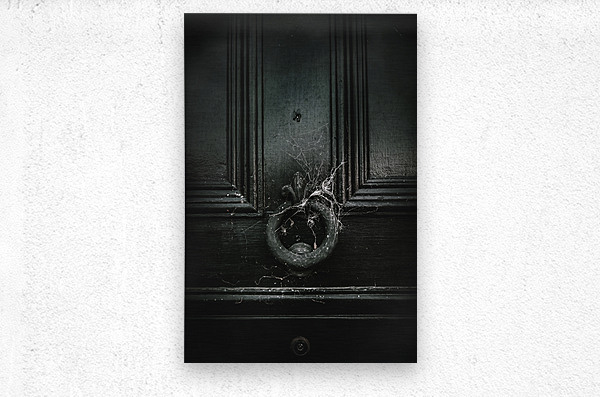 Vintage victorian style door with knocker covered in cobwebs from a nonconforming recluse withdrawn from society while living in solitary confinement. Safety behind closed doors