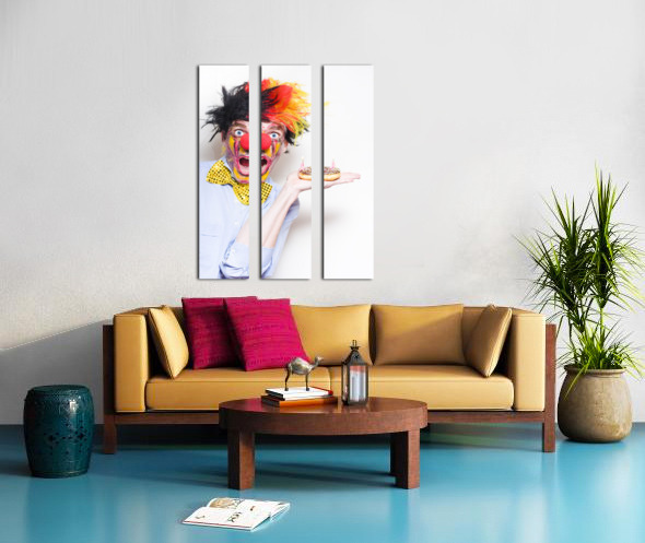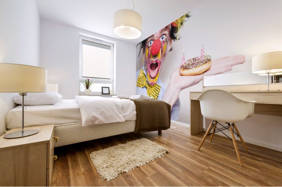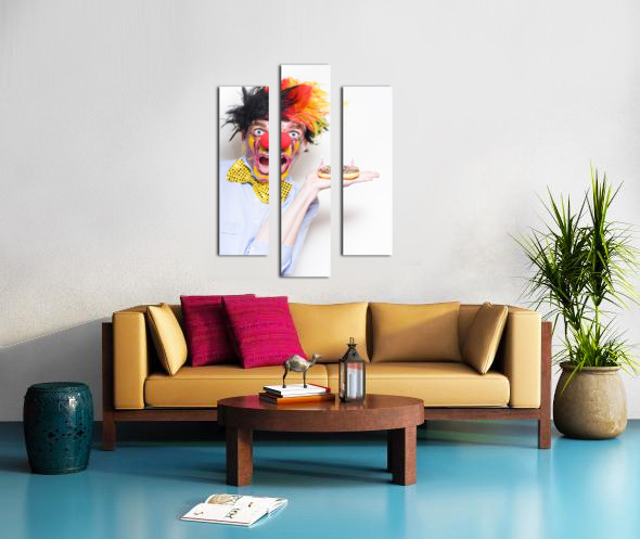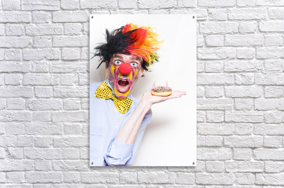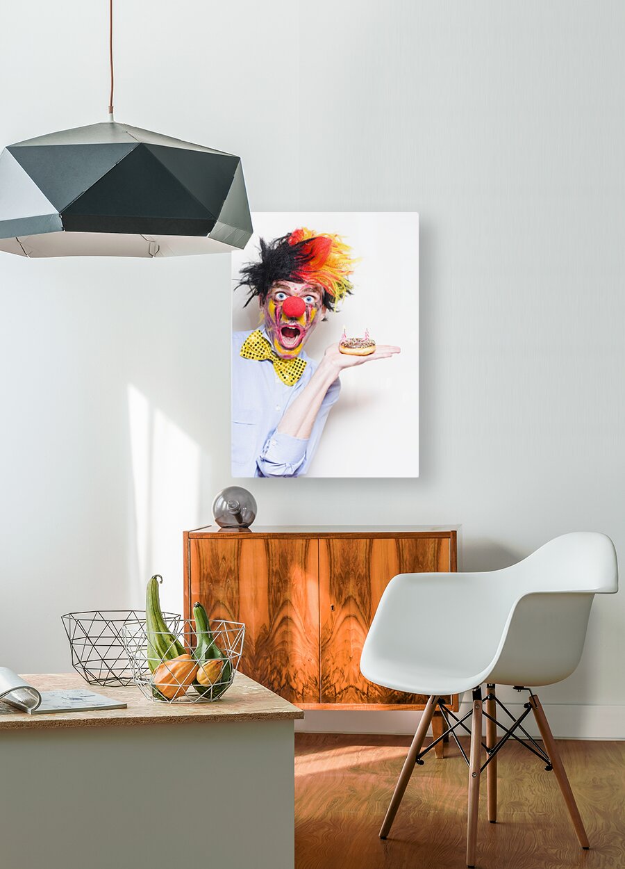 Get this artwork "Surprise Happy Birthday Clown Holding Party Cake" in a framed print.