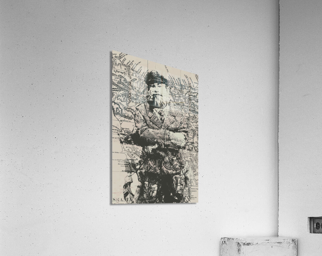 Vintage fine art on a voyage map overlaid on seafaring sailor in vintage nautical style