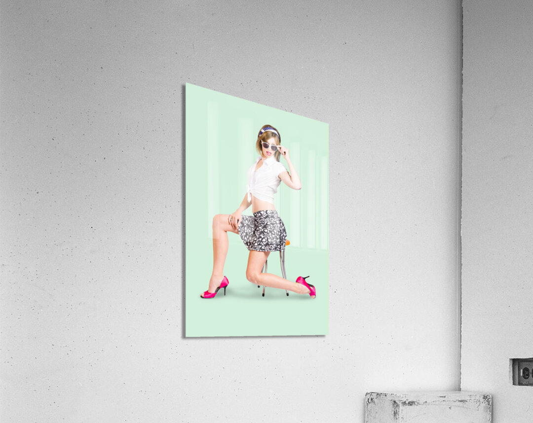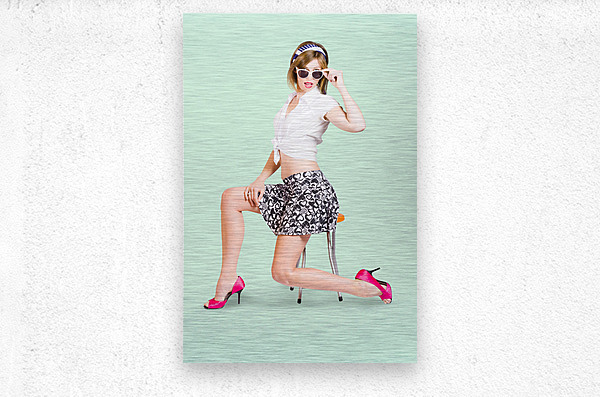 ABOUT THIS ARTWORK: SEXY BRUNETTE PIN UP GIRL IN PINK RETRO FASHION