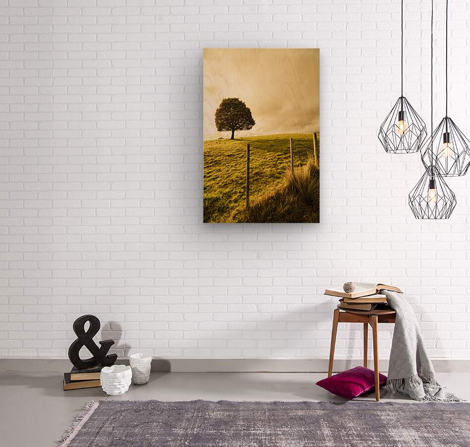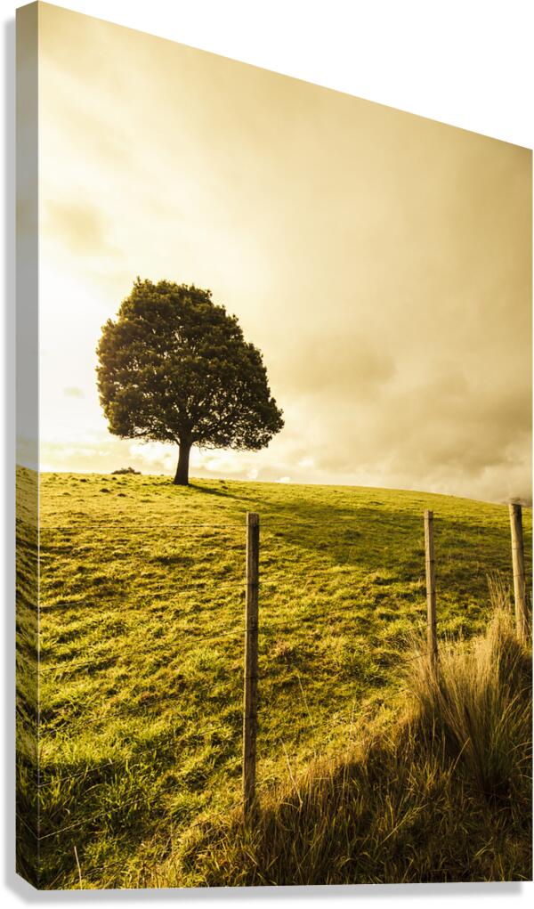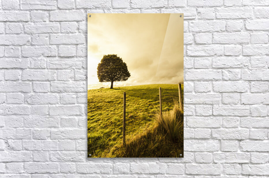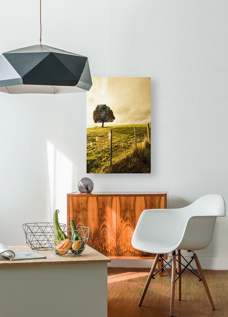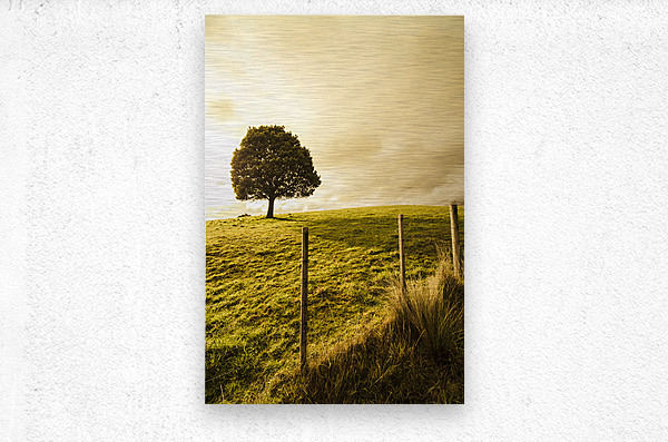 Green tasmanian background on the top of a hill with one leafy tree Ridgley Tasmania Australia