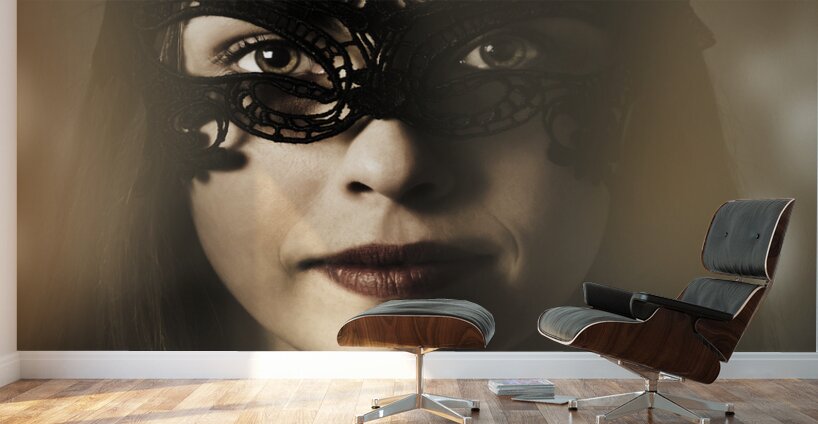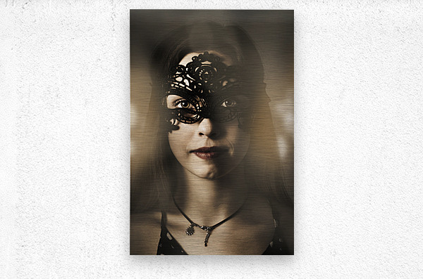 Dramatic dark portrait on the face of a beautiful young woman at luxury night ball in mysterious masquerade mask. Classy party girl