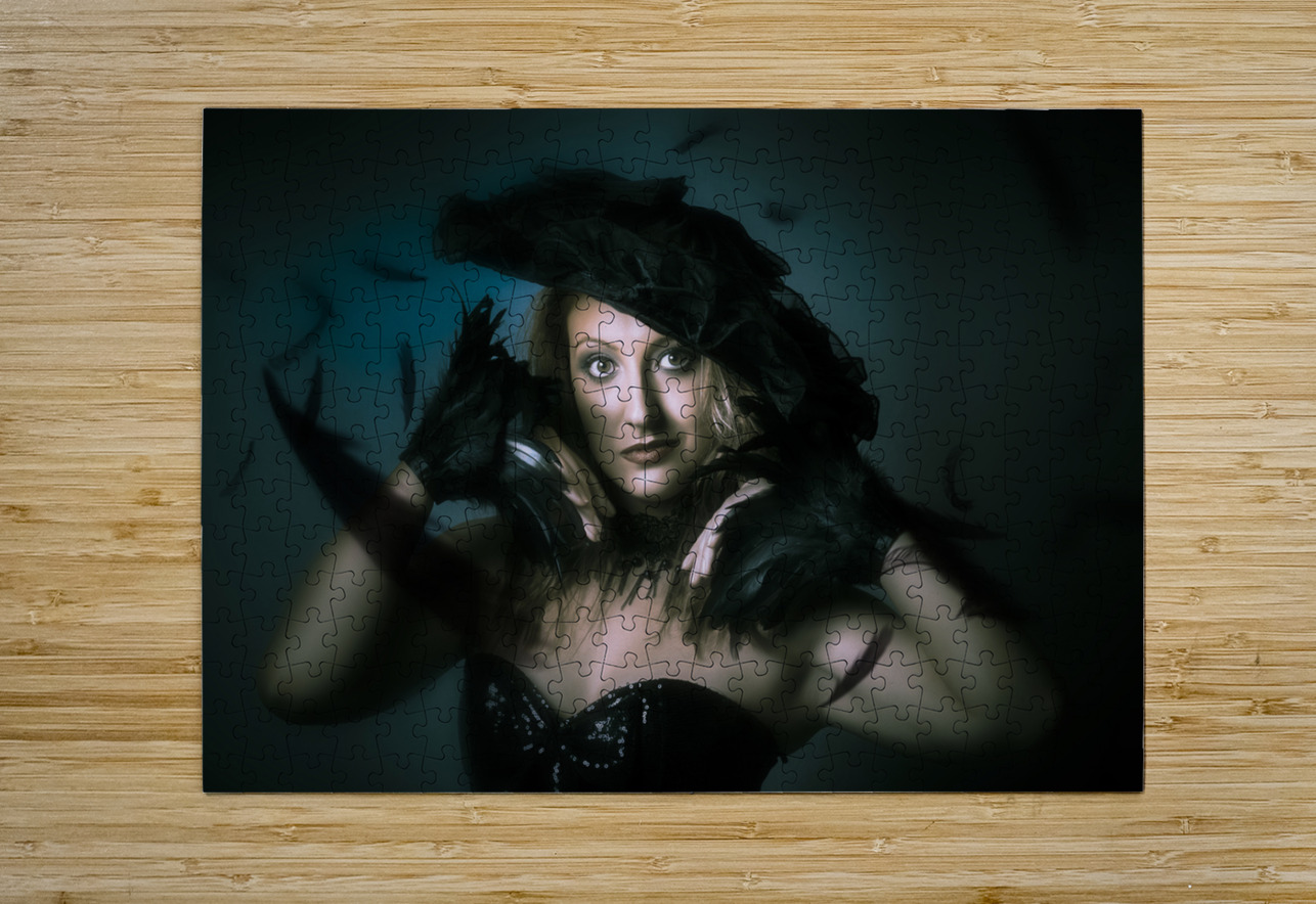 Beautiful mystical girl in delicate black fashion Jorgo Puzzle printing