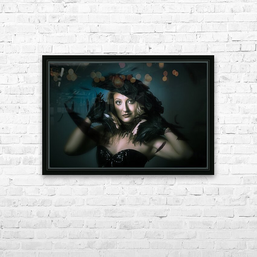 Beautiful mystical girl in delicate black fashion Frame print