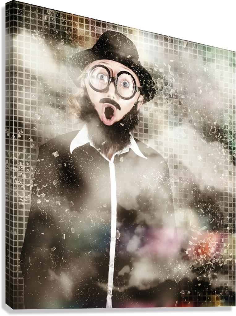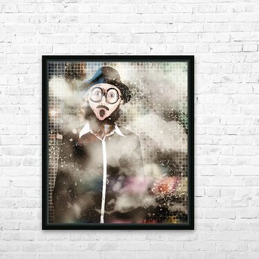 Get this artwork "Mad scientist with solution to chemical reaction " in a framed print.