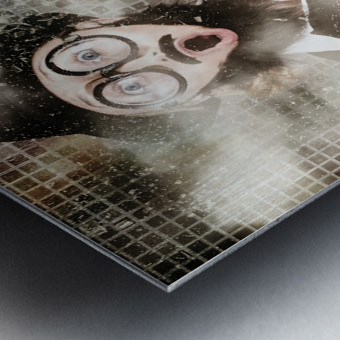 Funny abstract design portrait of a mad scientist woman standing in science laboratory looking surprised when finding an explosive solution to a chemi...[+]