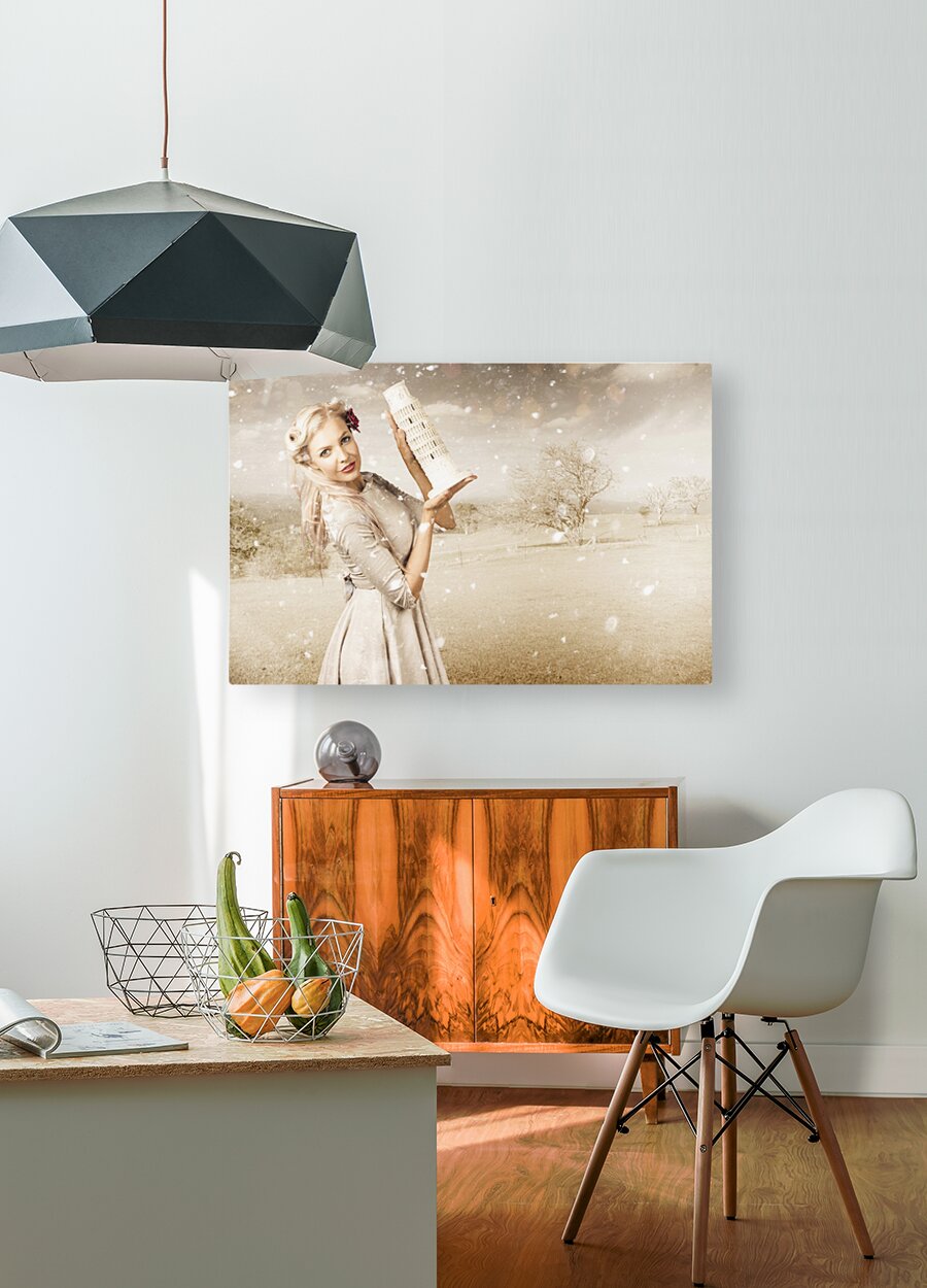 Vintage Woman Dreaming Of A Europe Travel Escape Frame print