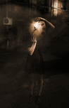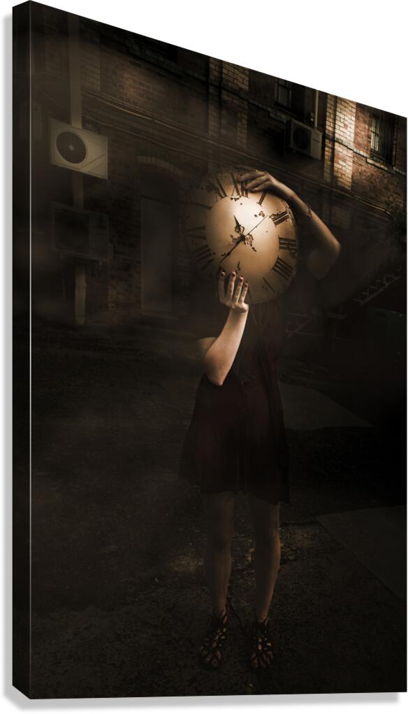 A mystery of time with a clock face and times past in enigmatic ways of streets bygone