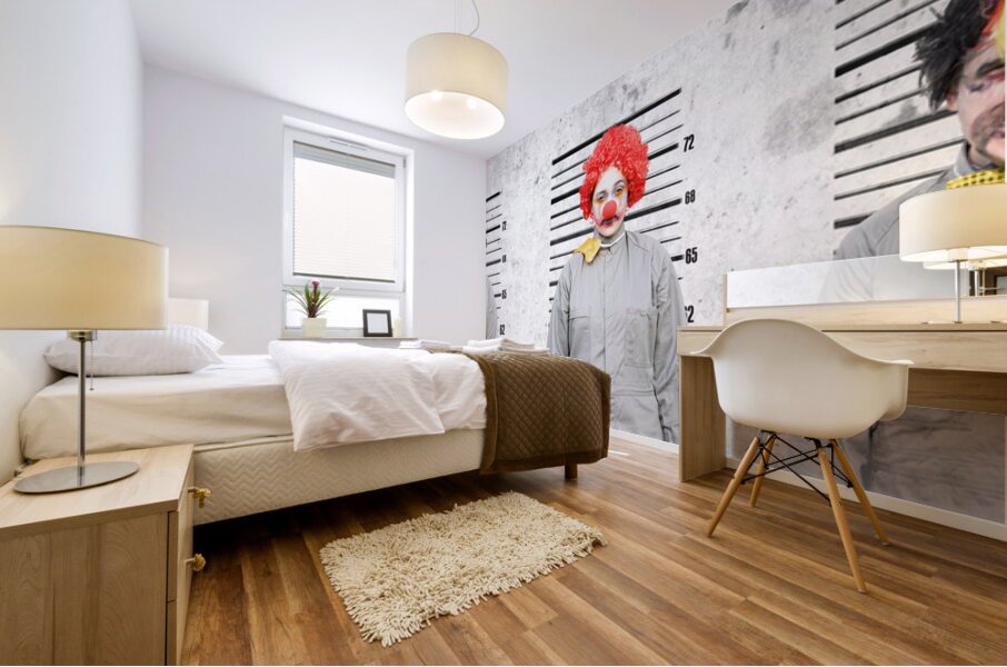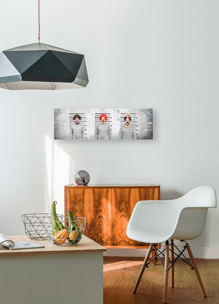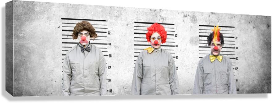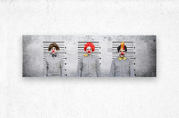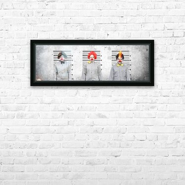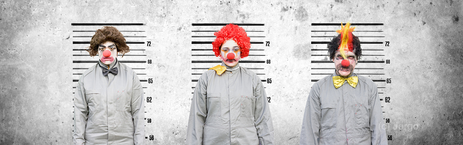 A Male And Two Female Clowns Who Face Criminal Charges Lineup Against A Cement Wall In An Attempt To Find Out The Criminal Amongst The Thugs In A Line...[+]