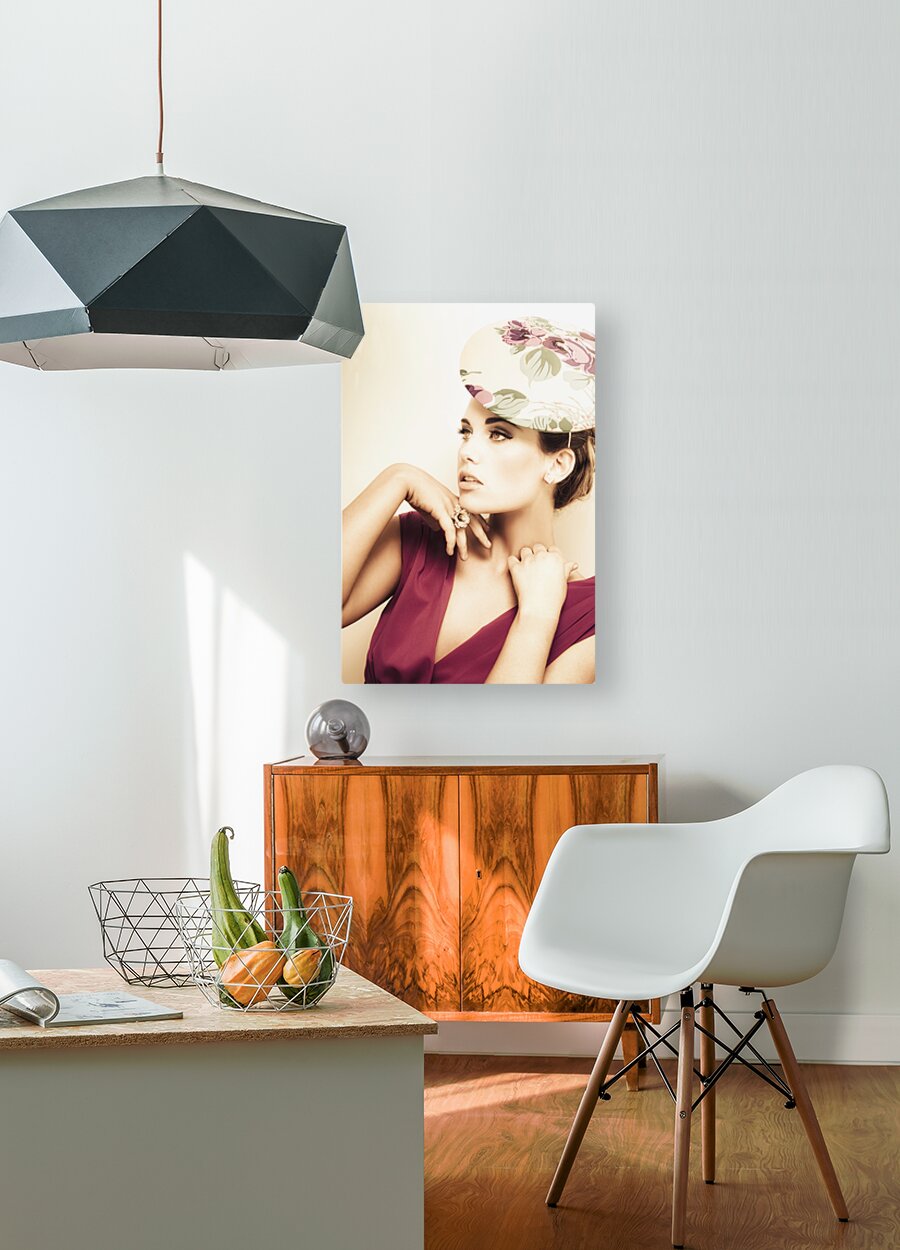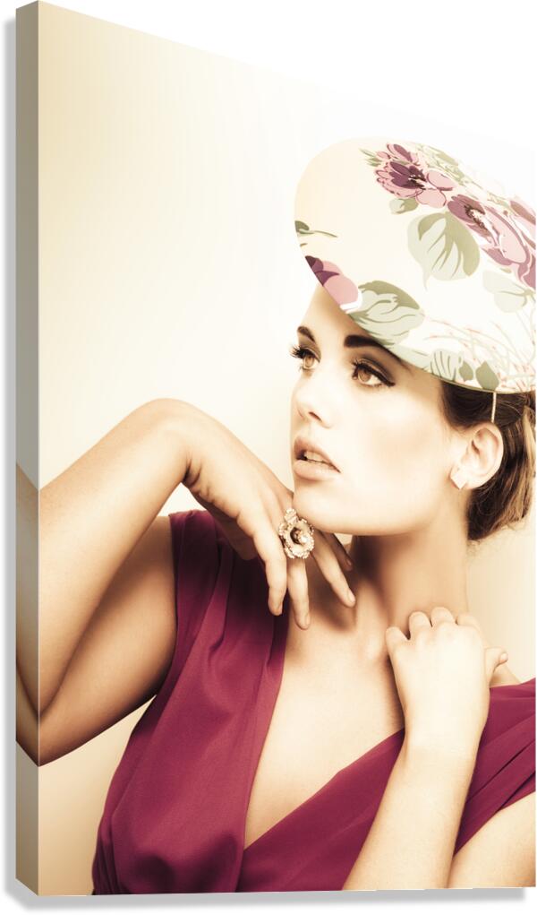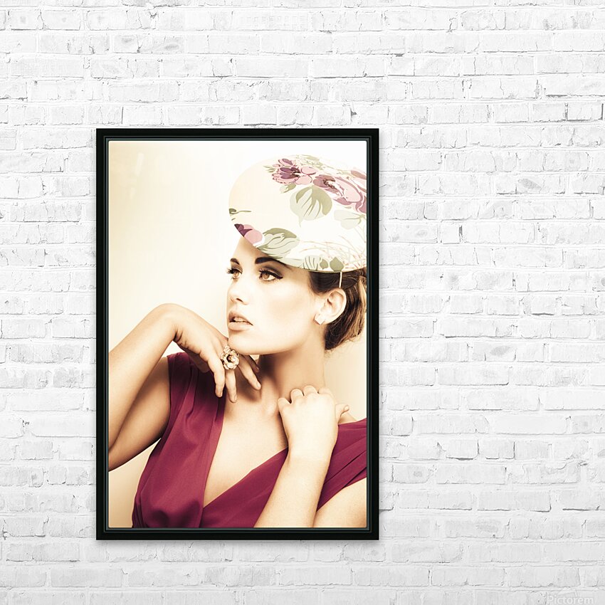 Get this artwork "woman wearing v-neck blouse and floral hat" in a framed print.
