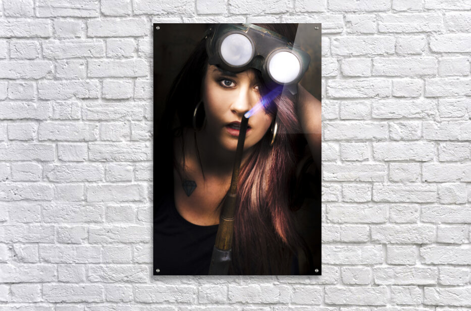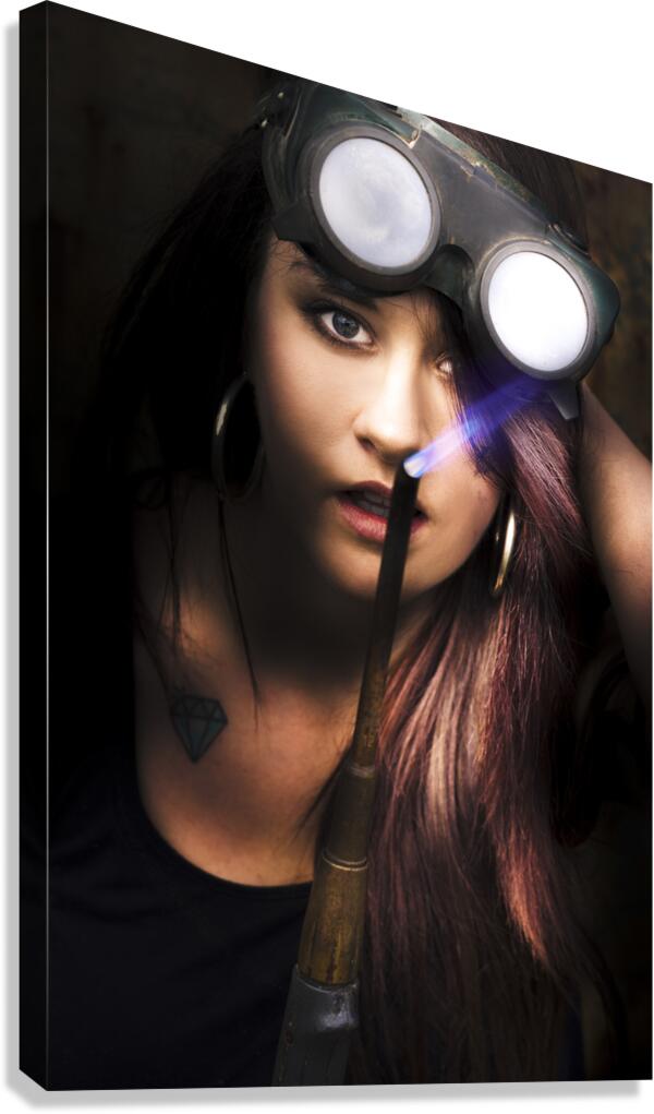 A Sexy Woman Welder Asks Does My Hair Look Alright When Welding Steel With A Blue Flame Mig Welder In A Statement OF Hot Fashion