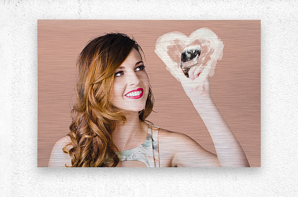 Art studio conceptual on a smiling gorgeous painter woman expressing art love