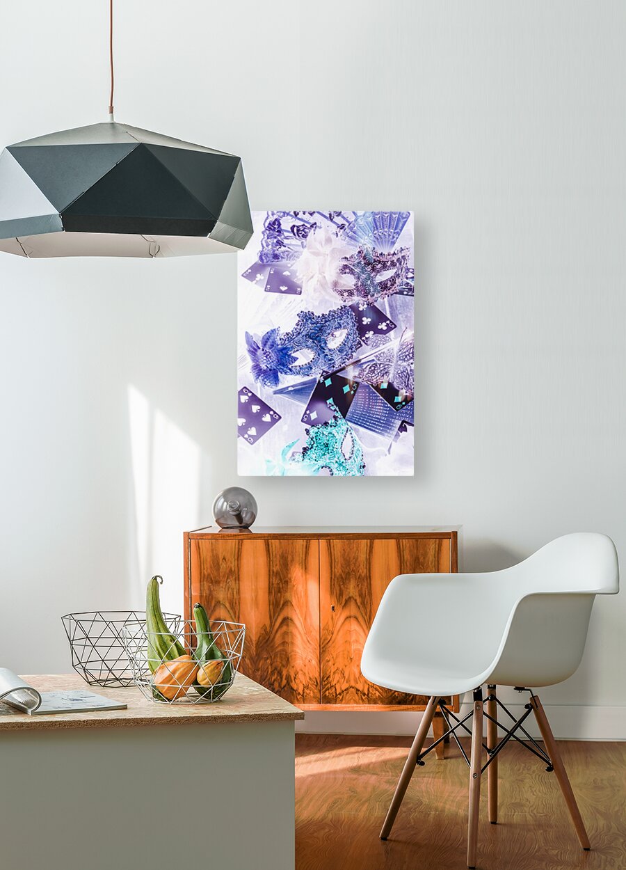 Retro pop art in an entertaining scene of western card games and elegant magic tricks. Magical masquerade