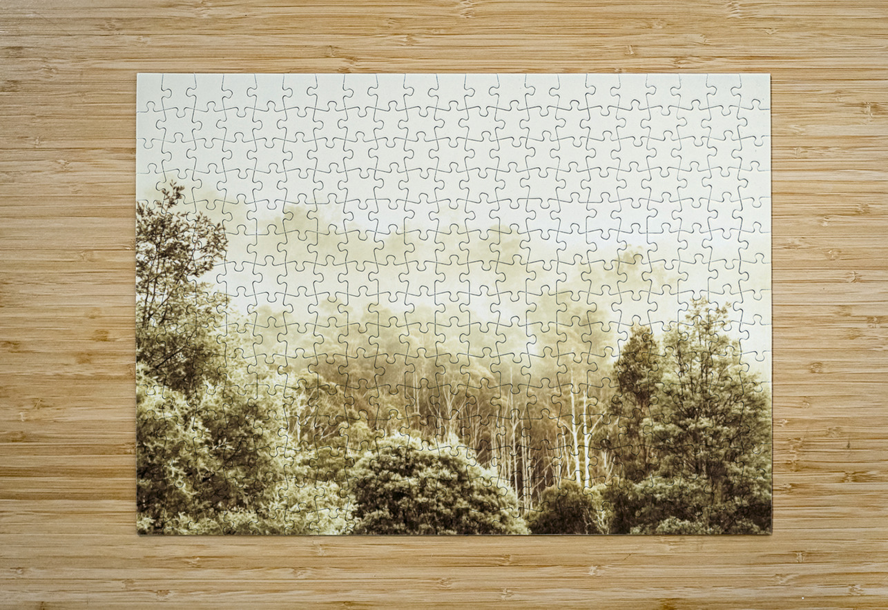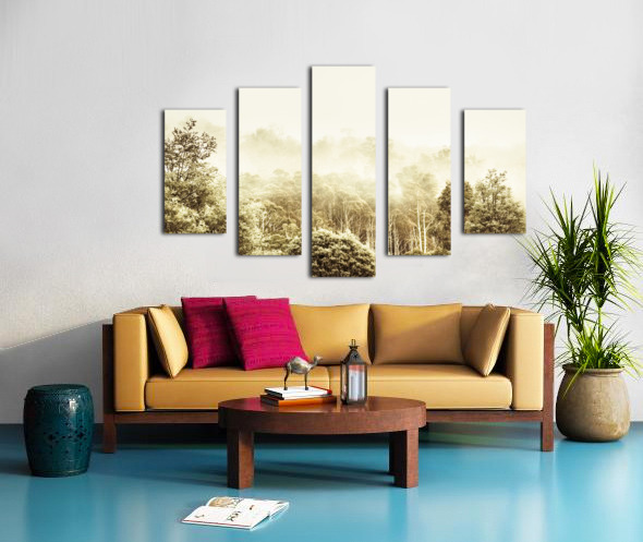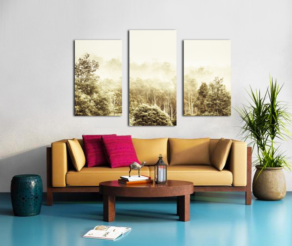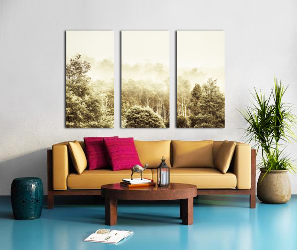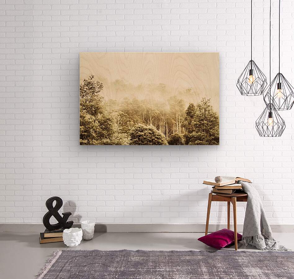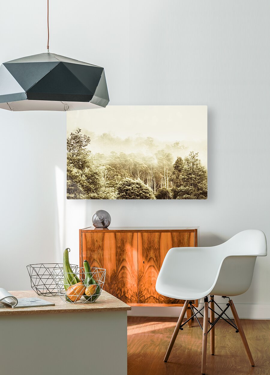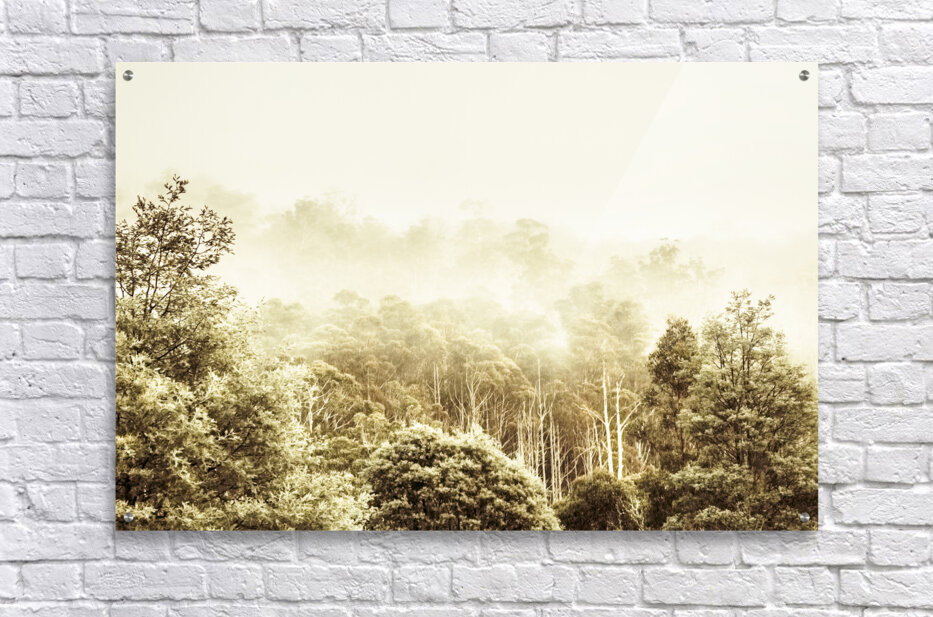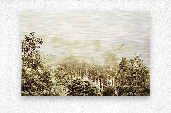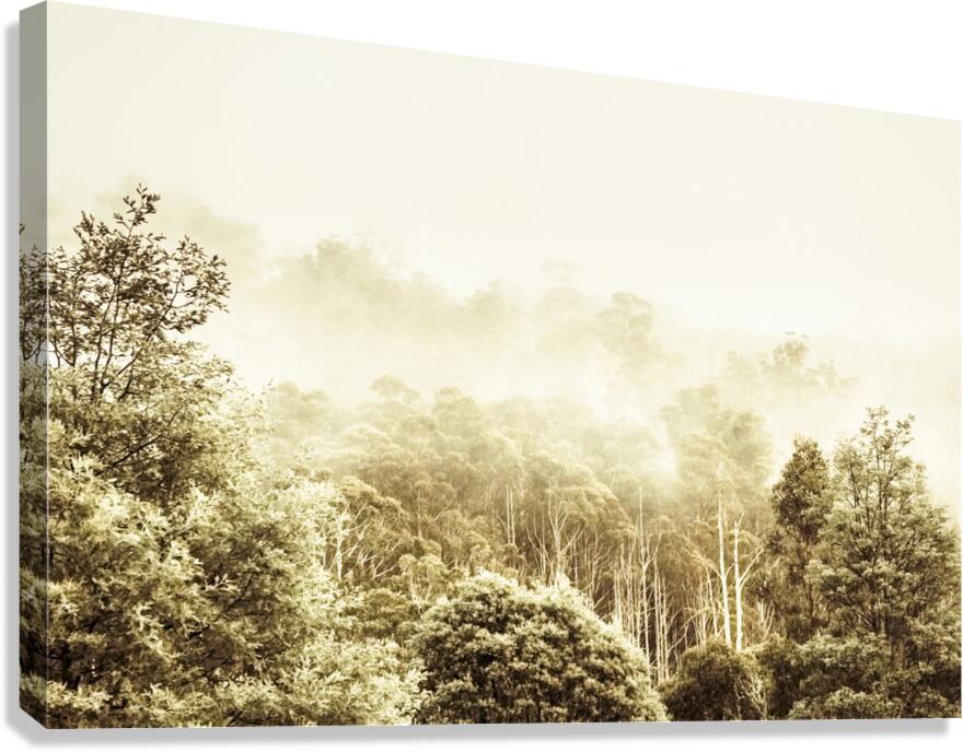 Vintage fine art landscape of a woodland in a wonderful misty shroud of fog. Taken Judbury Tasmania Australia