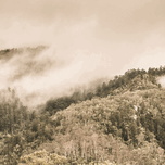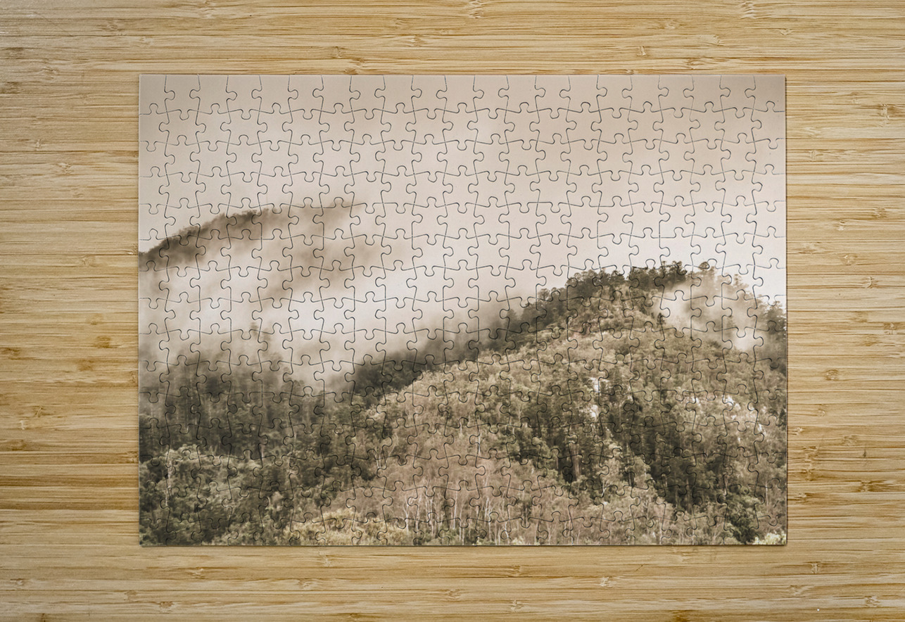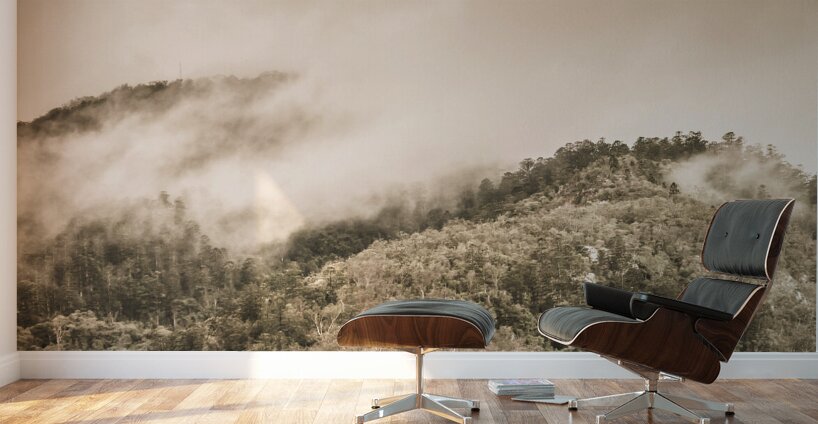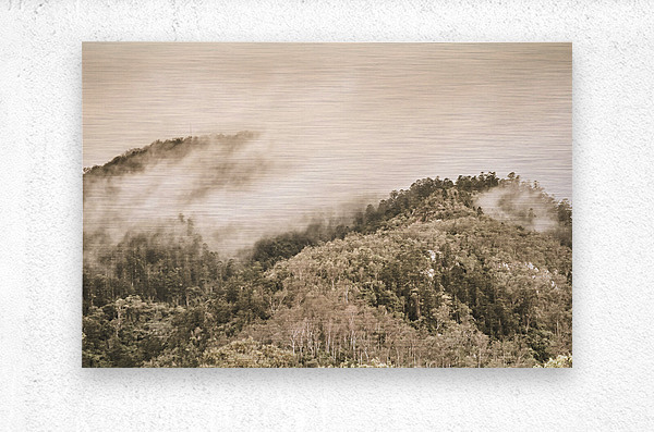 Fine art nature scene on a calming view of elevated wonder with mountain mists and dense tree coverage. Mt Perry Queensland Australia