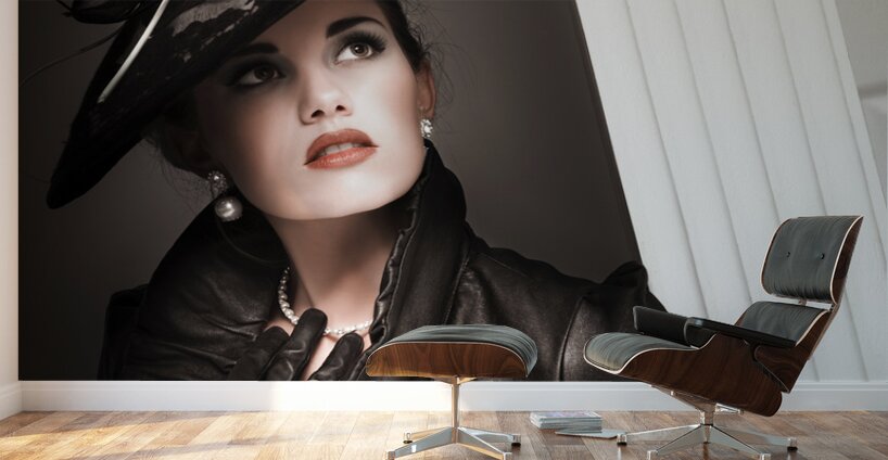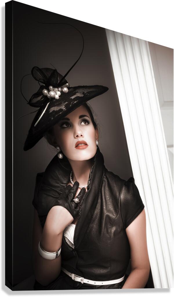 Get this artwork "elegant woman wearing black vintage fashion" in a framed print.
