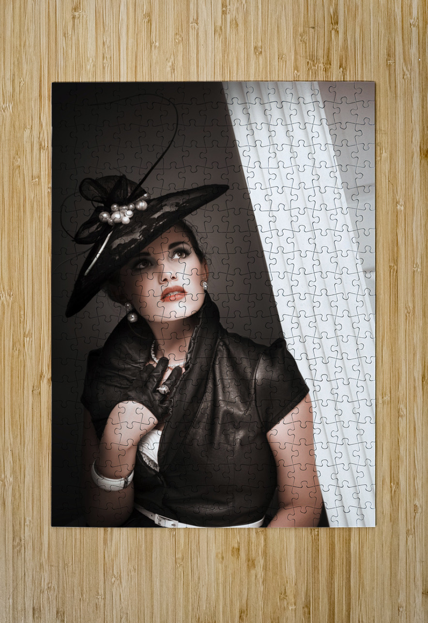 elegant woman wearing black vintage fashion Jorgo Puzzle printing