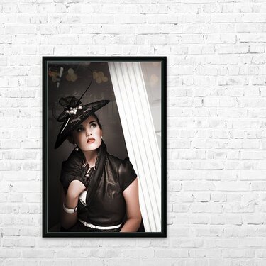 elegant woman wearing black vintage fashion Picture Frame Printing