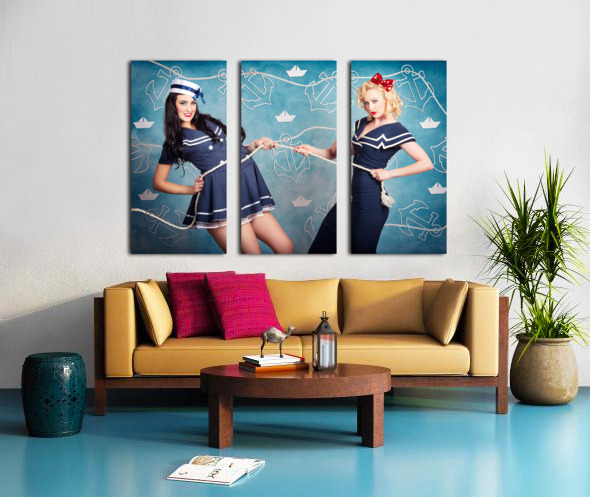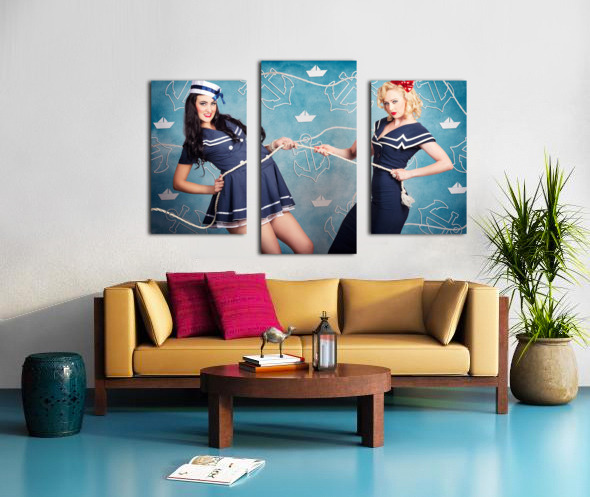Beautiful navy pinup girls on marine background Frame print