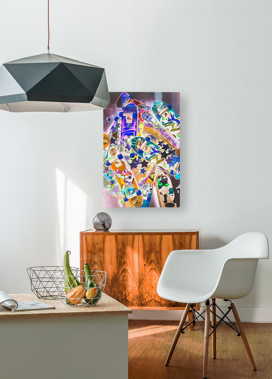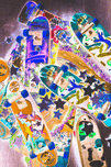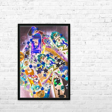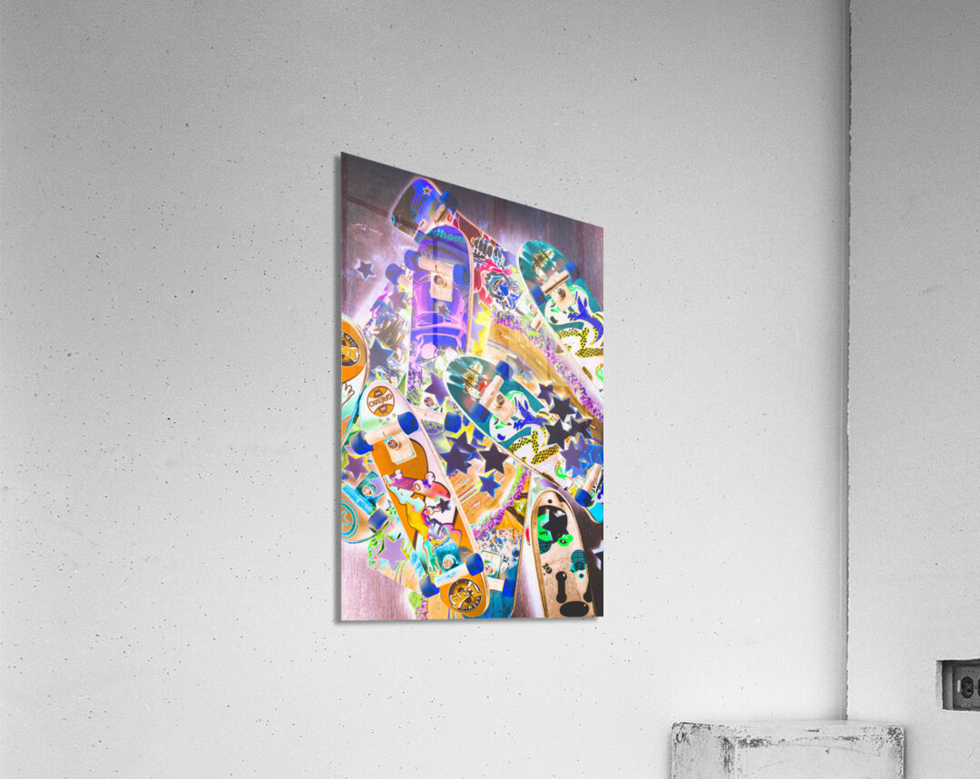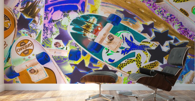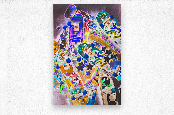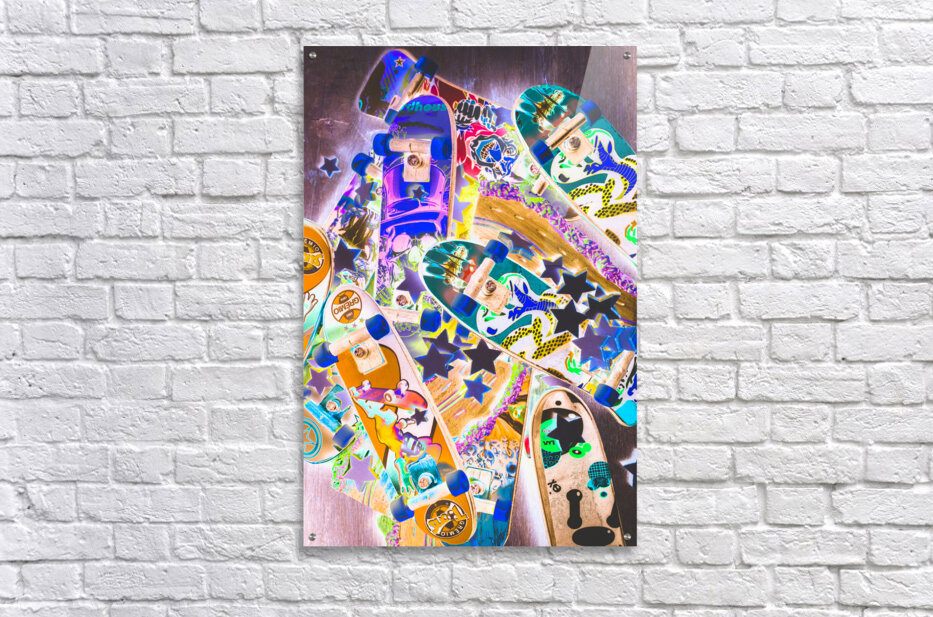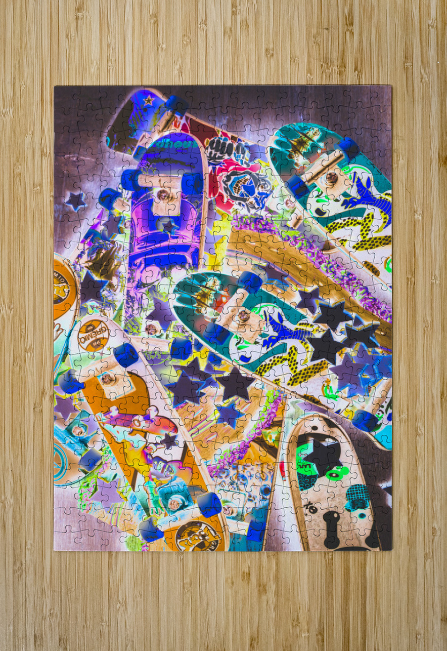 Creative pop art abstract on a mix of neon skateboard decks and roads. Skating stars