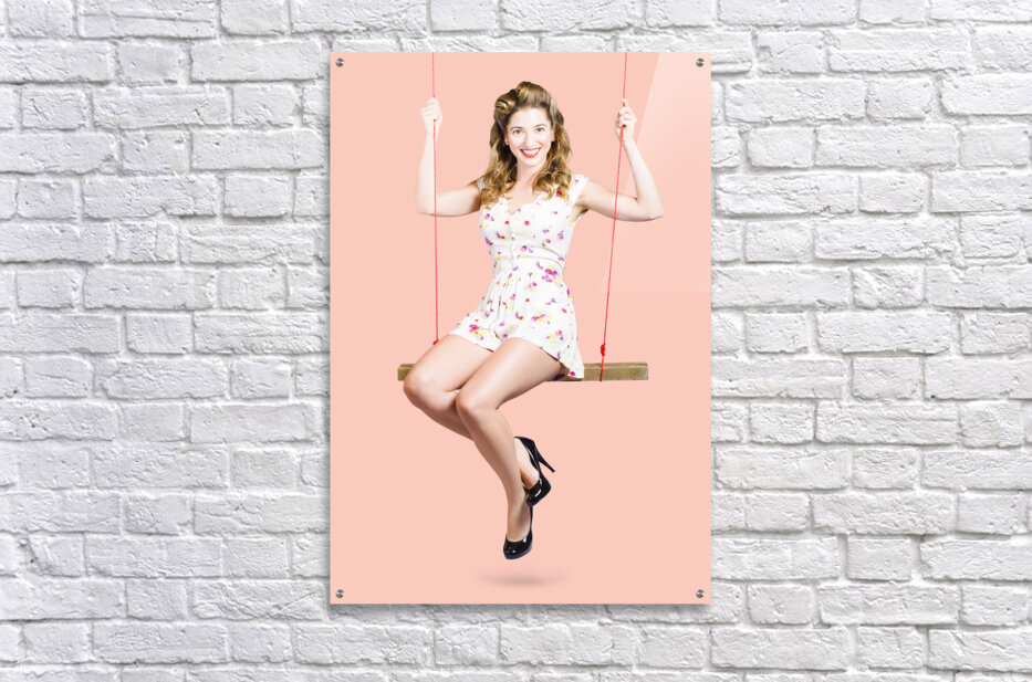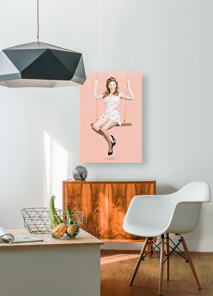 ABOUT THIS ARTWORK: BEAUTIFUL FIFTIES PIN UP GIRL SMILING ON SWING