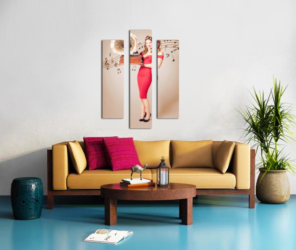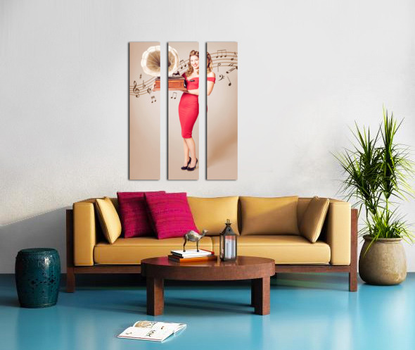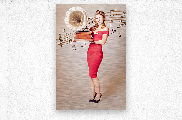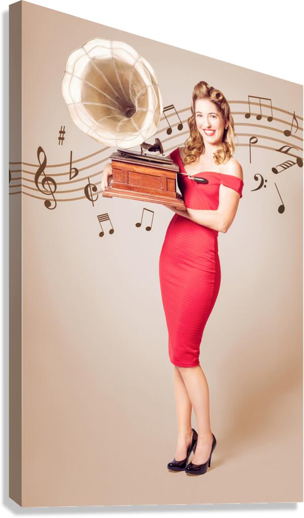 ABOUT THIS ARTWORK: PIN-UP AT THE DISCO. VINTAGE WOMAN WITH GRAMOPHONE