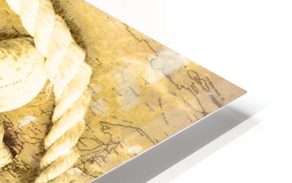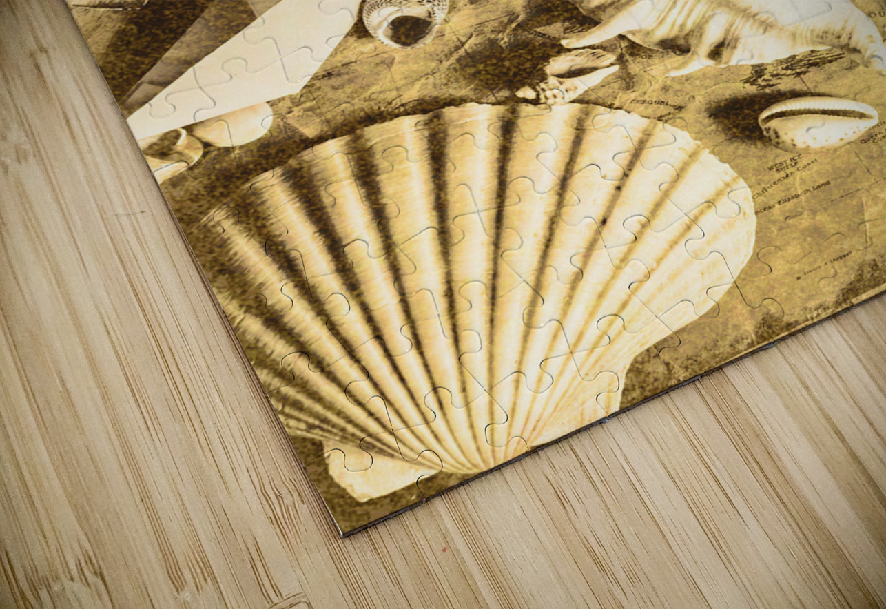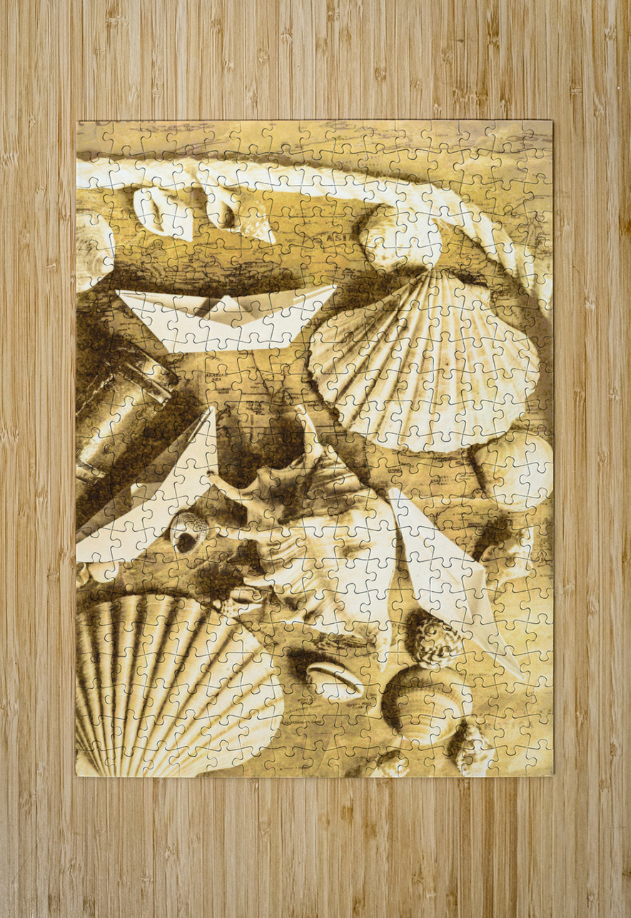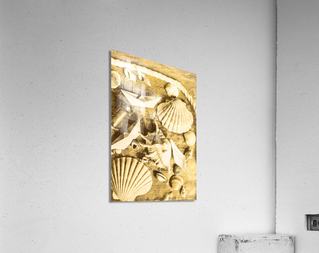 Sailing scene of old world nautics with a scattering of harbor shells on parchment maps. Tabling a cruise