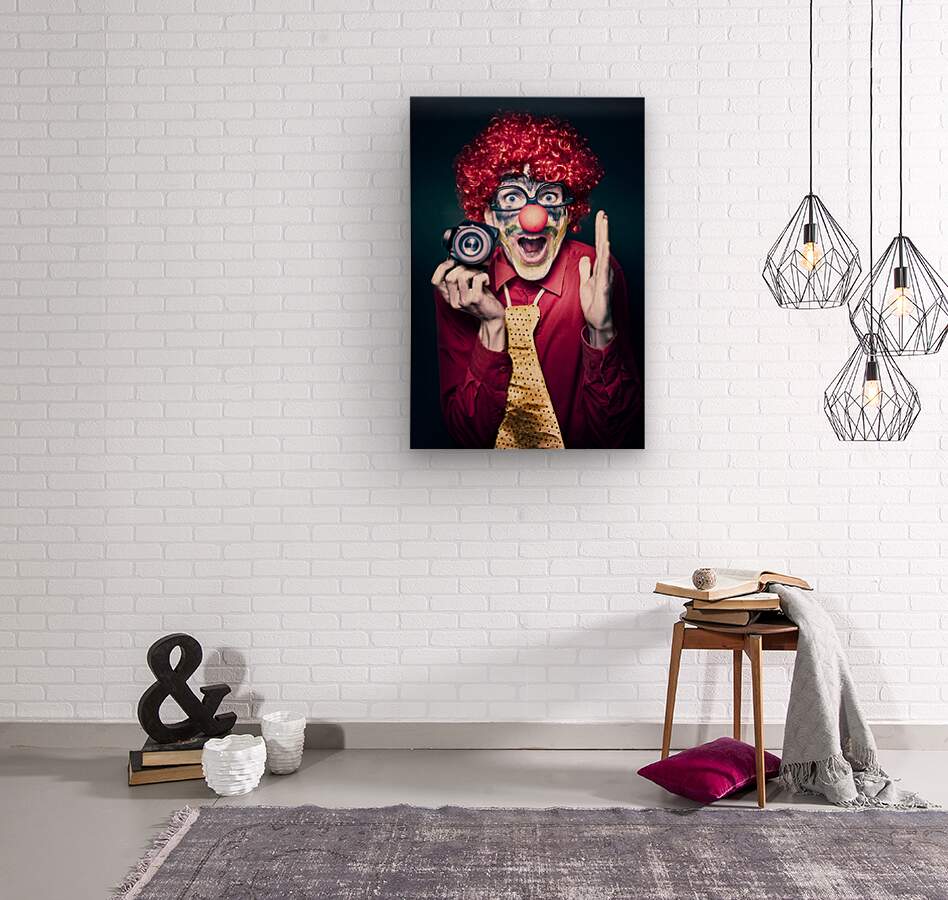 Get this artwork "Excited Clown With Camera At Kids Birthday Party" in a framed print.
