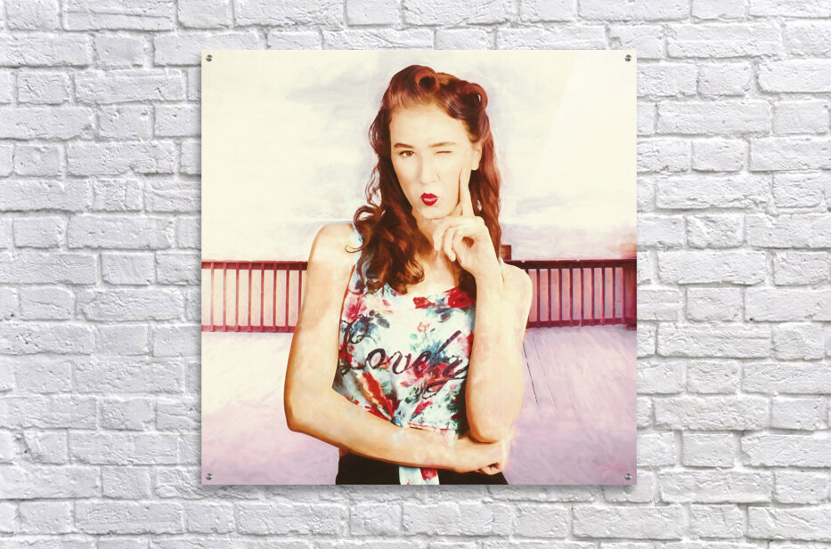 Retro clip art of a thinking pin-up woman Picture Frame Printing