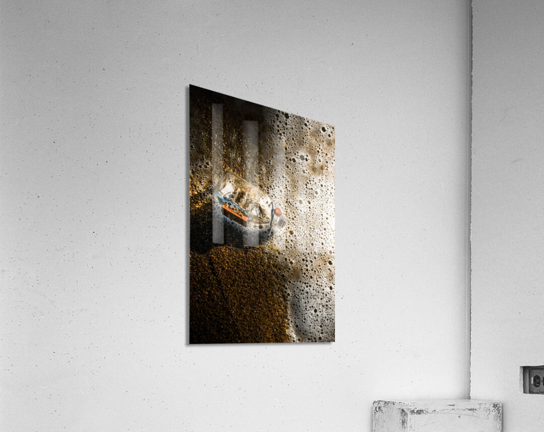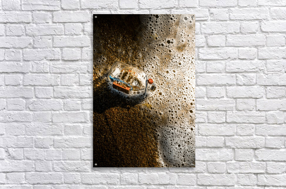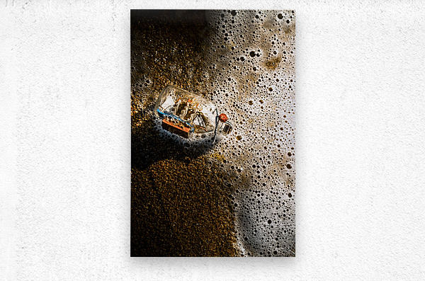 Dark contrasted ocean photo of a shipwrecked glass boat laying awash in the seas of destruction. Adventures gone wrong
