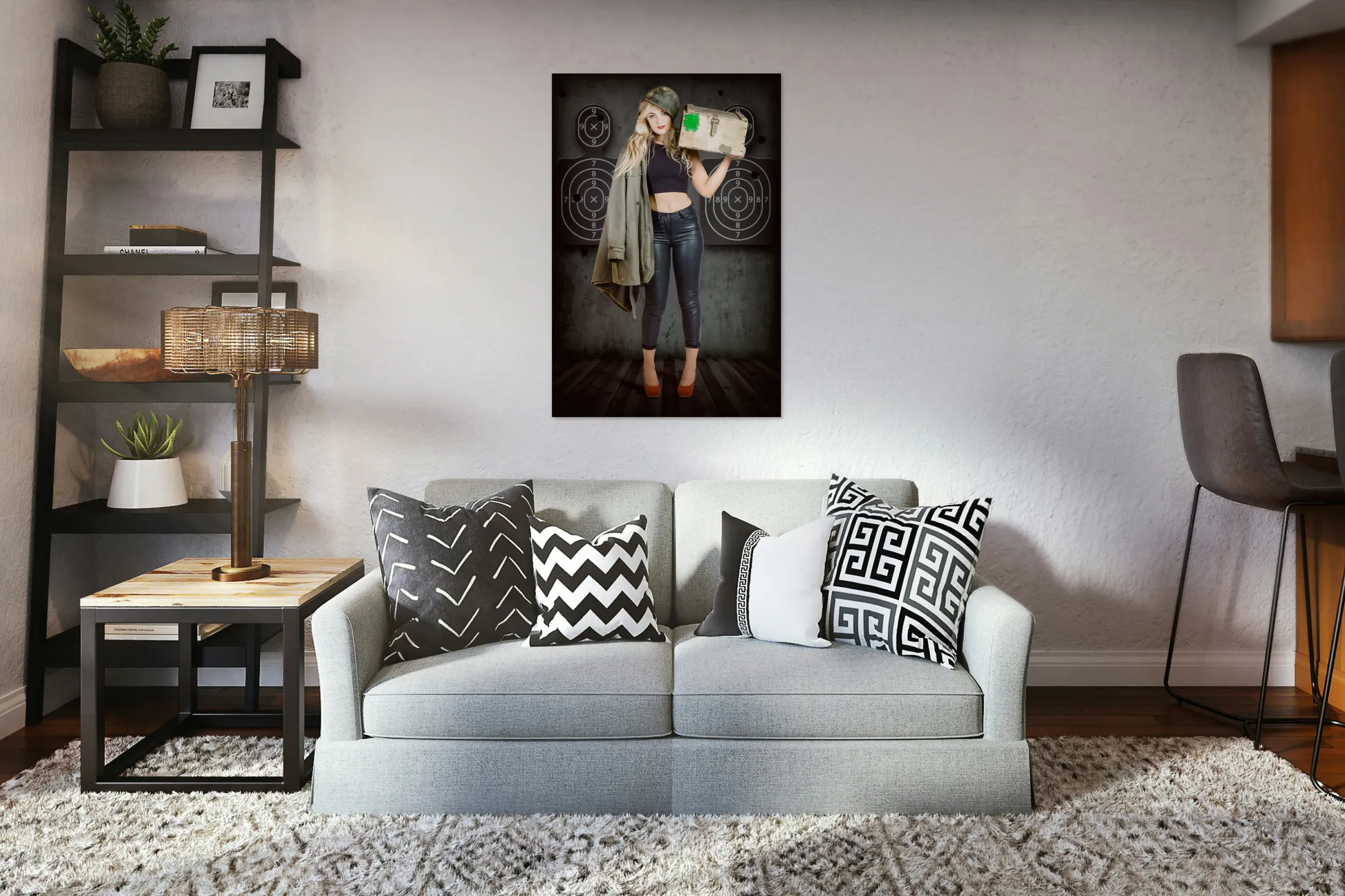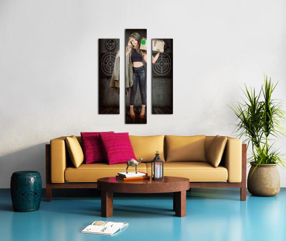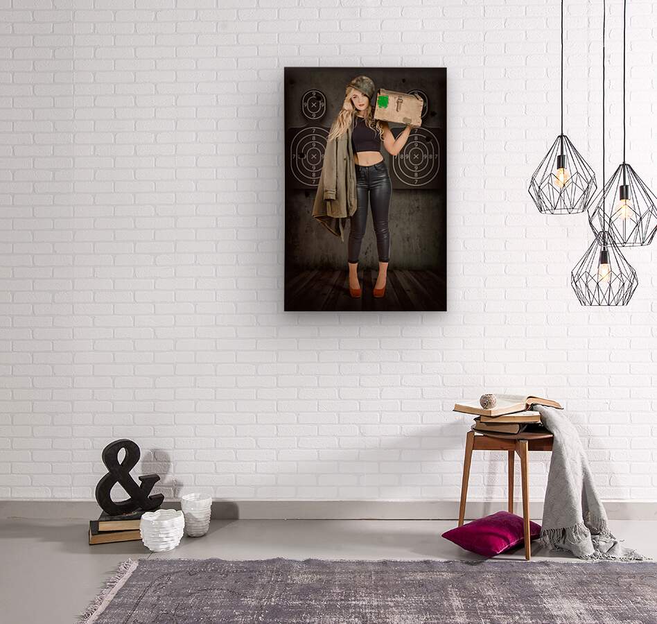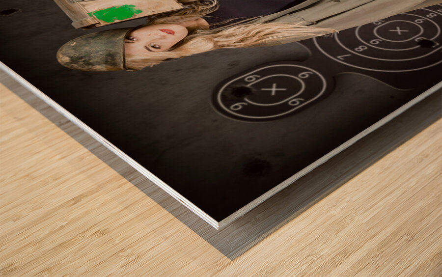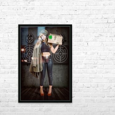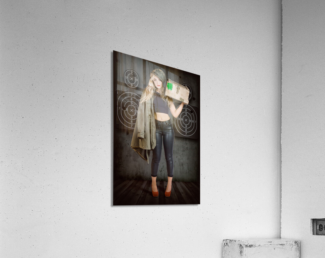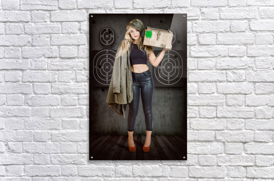Get this artwork "Army pinup girl at rifle range. Bullet proof" in a framed print.