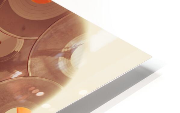 Vintage audio concept with a pile of LP Records stacked to the sound of the seventies. Background music