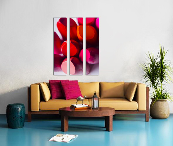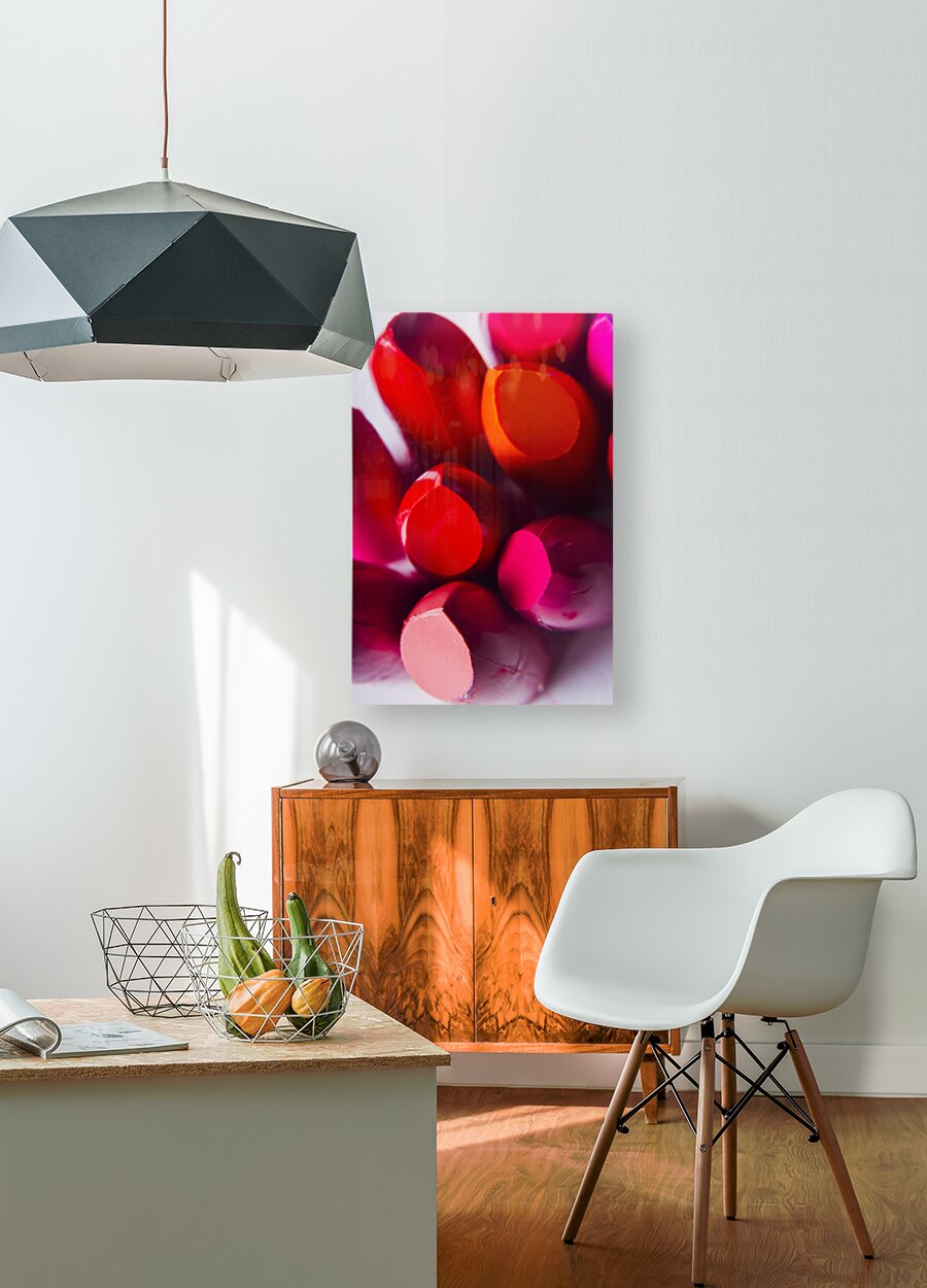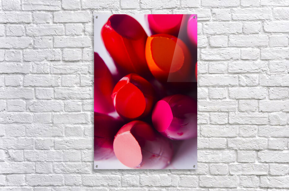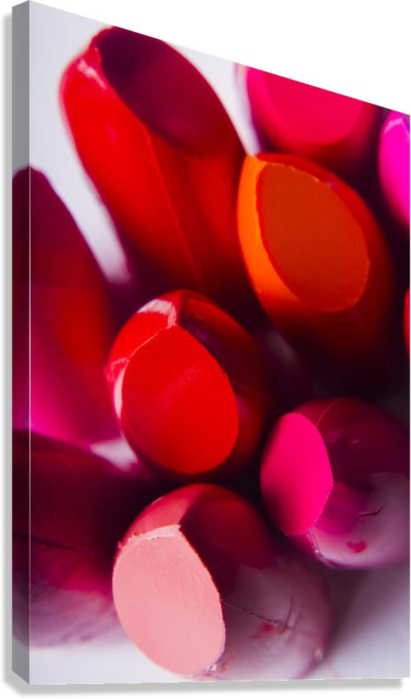 A visual advertising scene in make-up products with a top down close-up on a glossy lipstick pallet