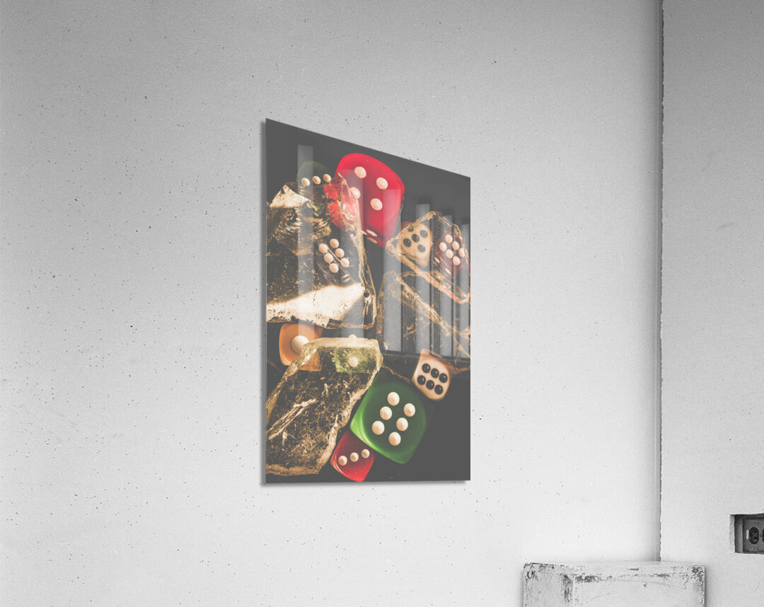Vice versa in a scene of rolling luck with dice and risk on a table of still life play