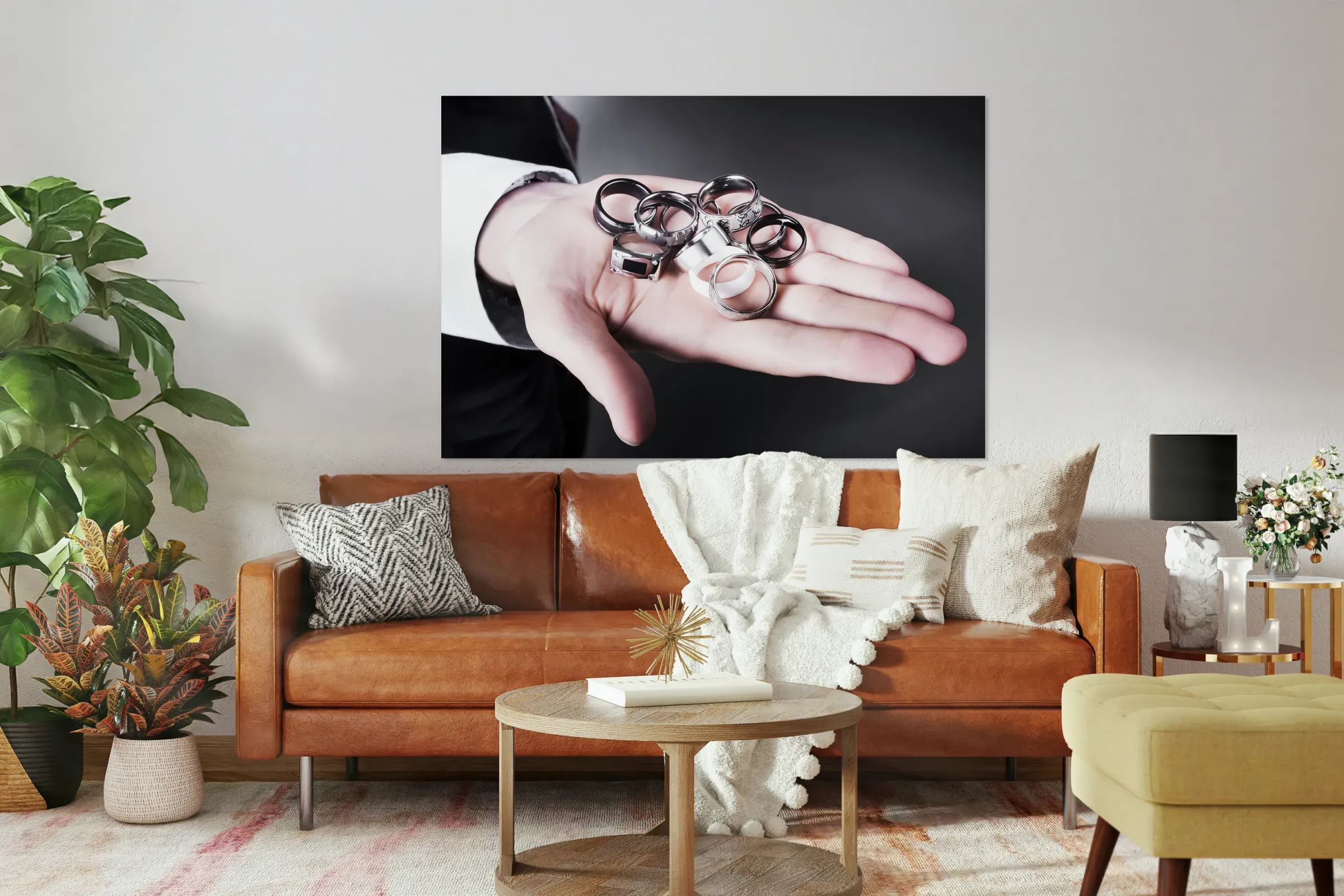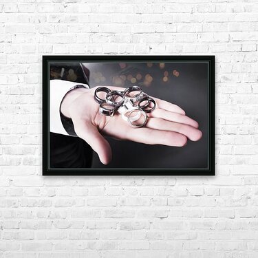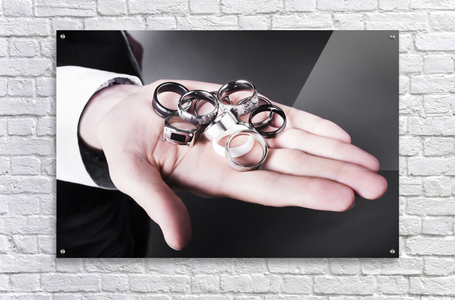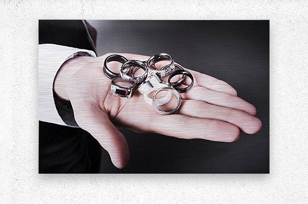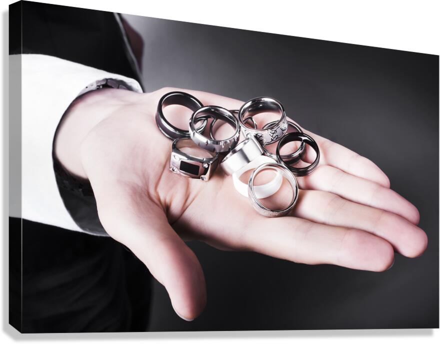 Get this artwork "Man displaying a selection of stylish rings" in a framed print.