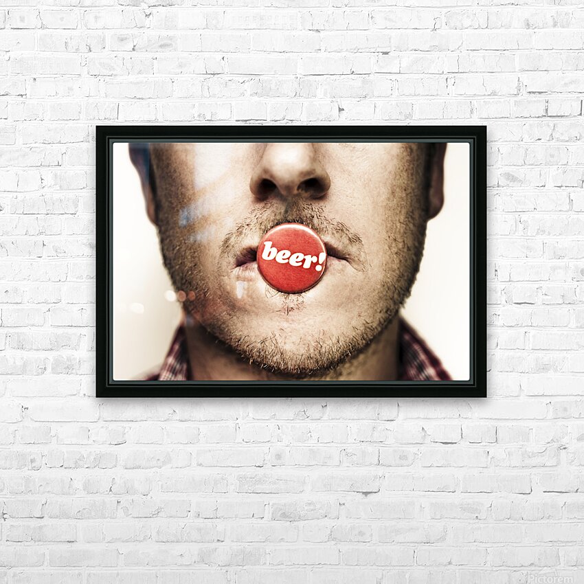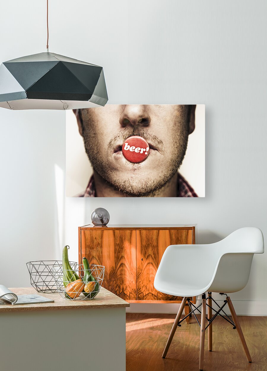 Get this artwork "Face Of A Man With Beer Badge" in a framed print.