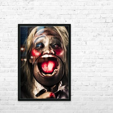 Dark and scary horror face. Evil laugh Frame print