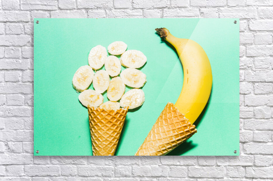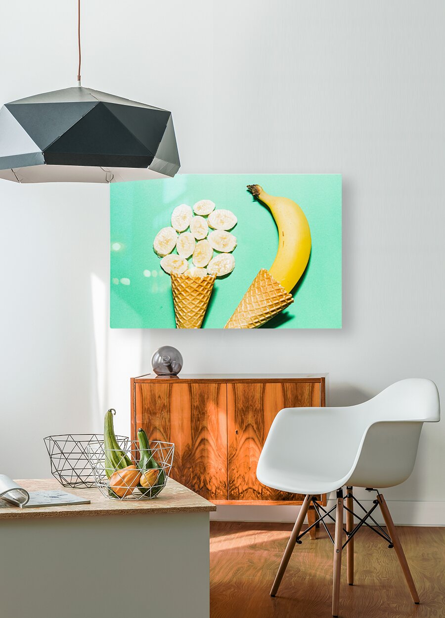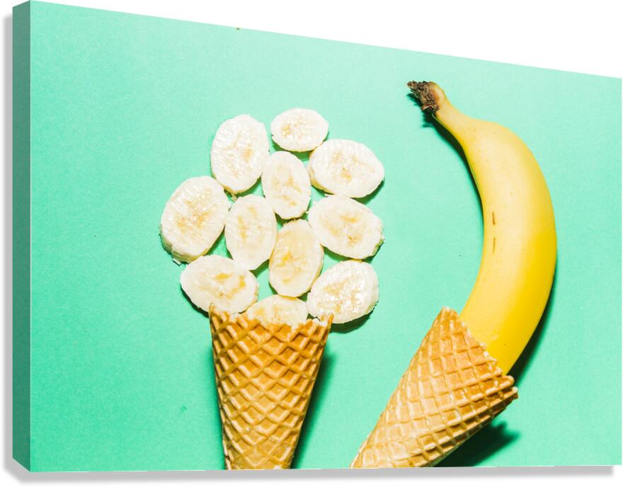 Get this artwork "Waffle cones with fresh banana" in a framed print.